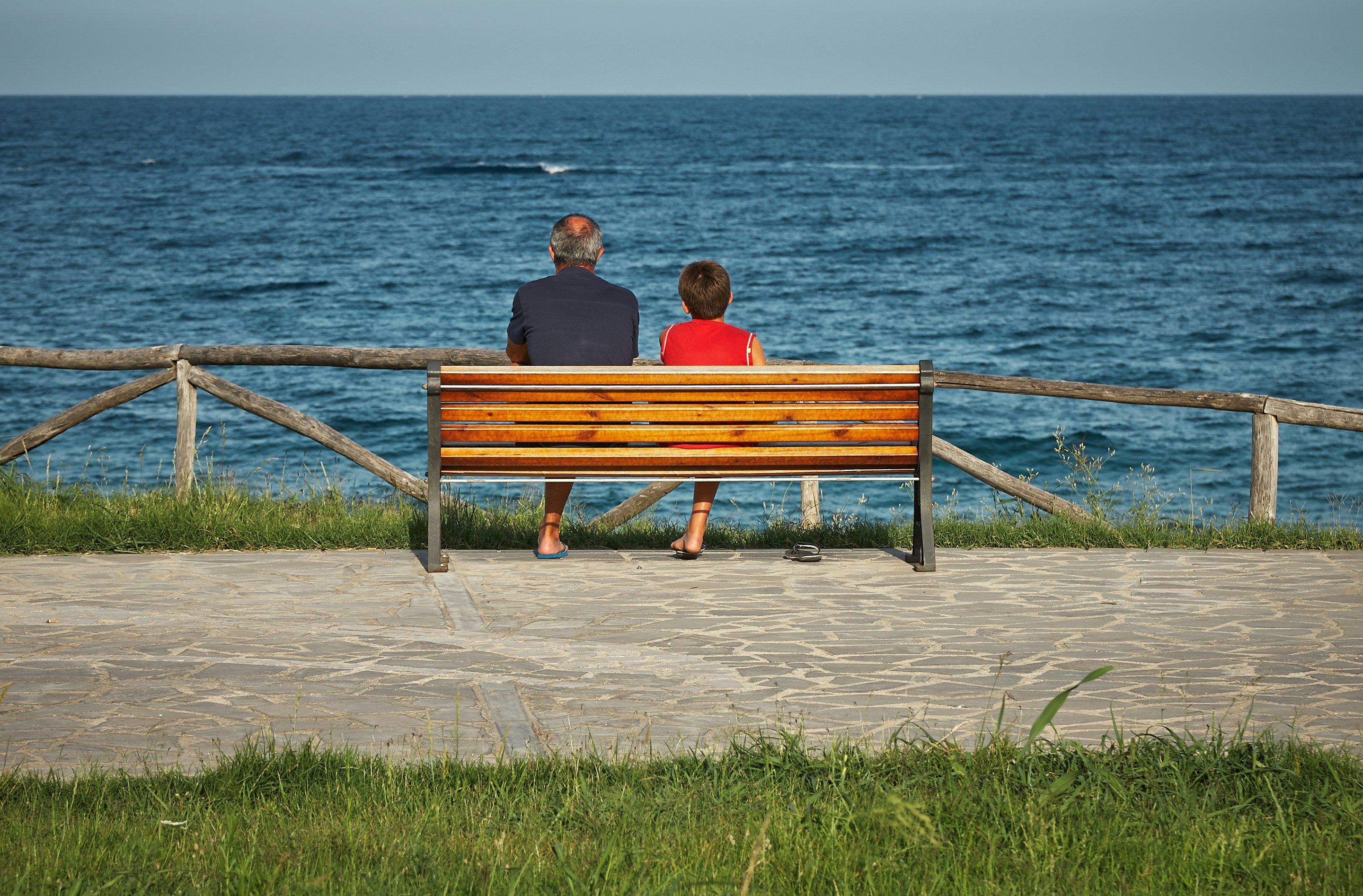 9. Two Person Sitting On Bench Beside Body Of Water Faceless Zoom Background