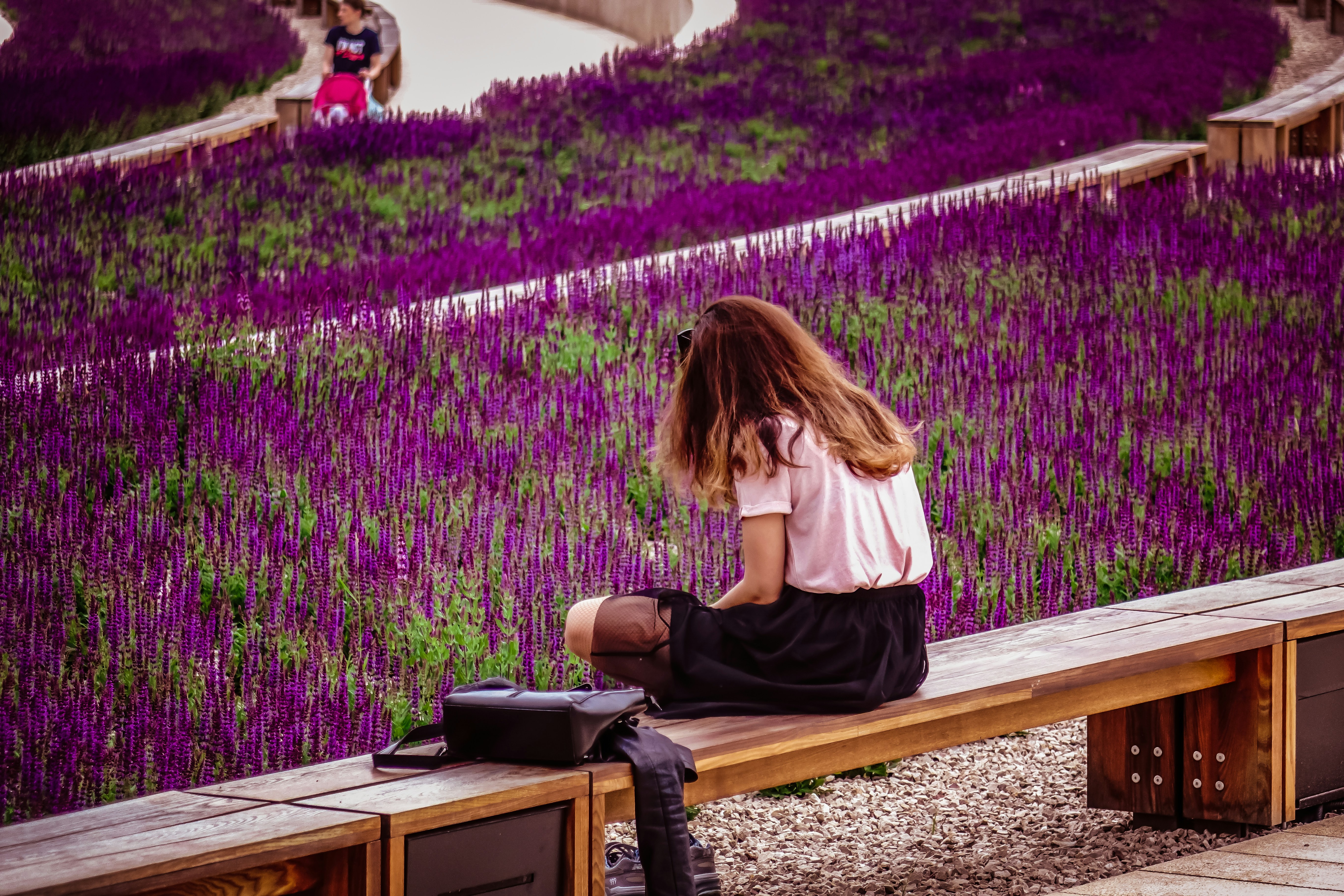 2. Woman Sitting On Brown Wooden Bench Faceless Zoom Background