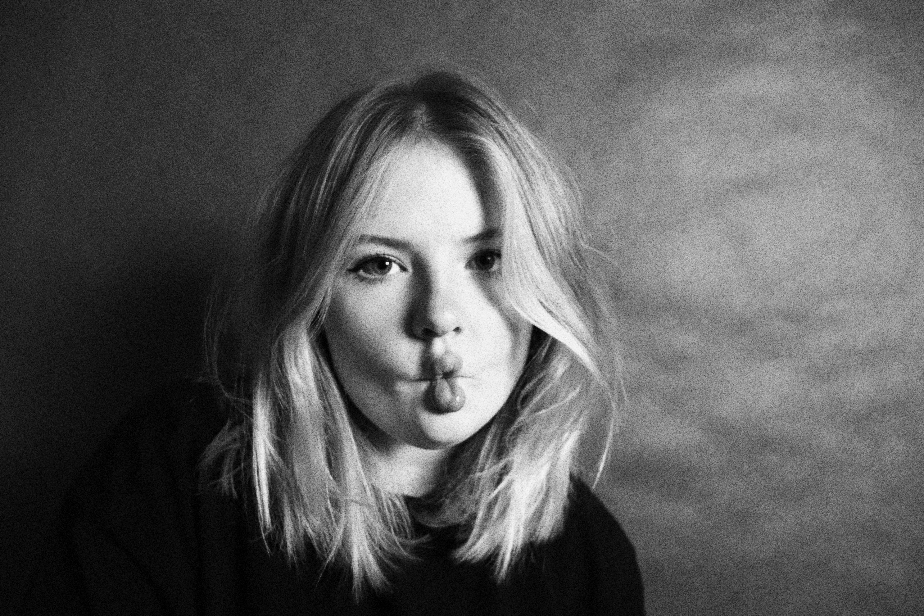 4. Grayscale Photo Of Woman With Blonde Hair Female Zoom Background