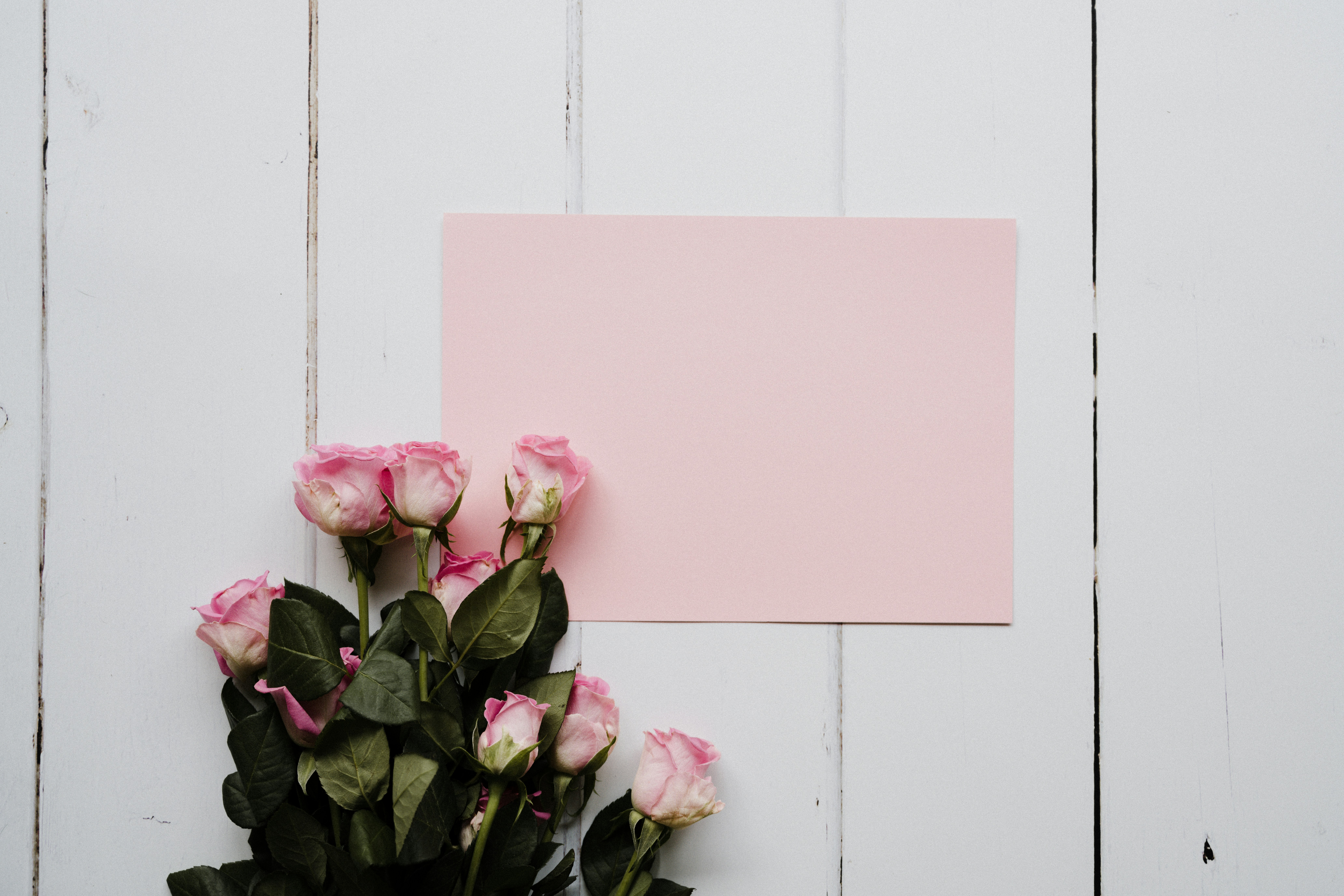 9. Pink Rose Bouquet On White Wooden Wall Feminine Zoom Background