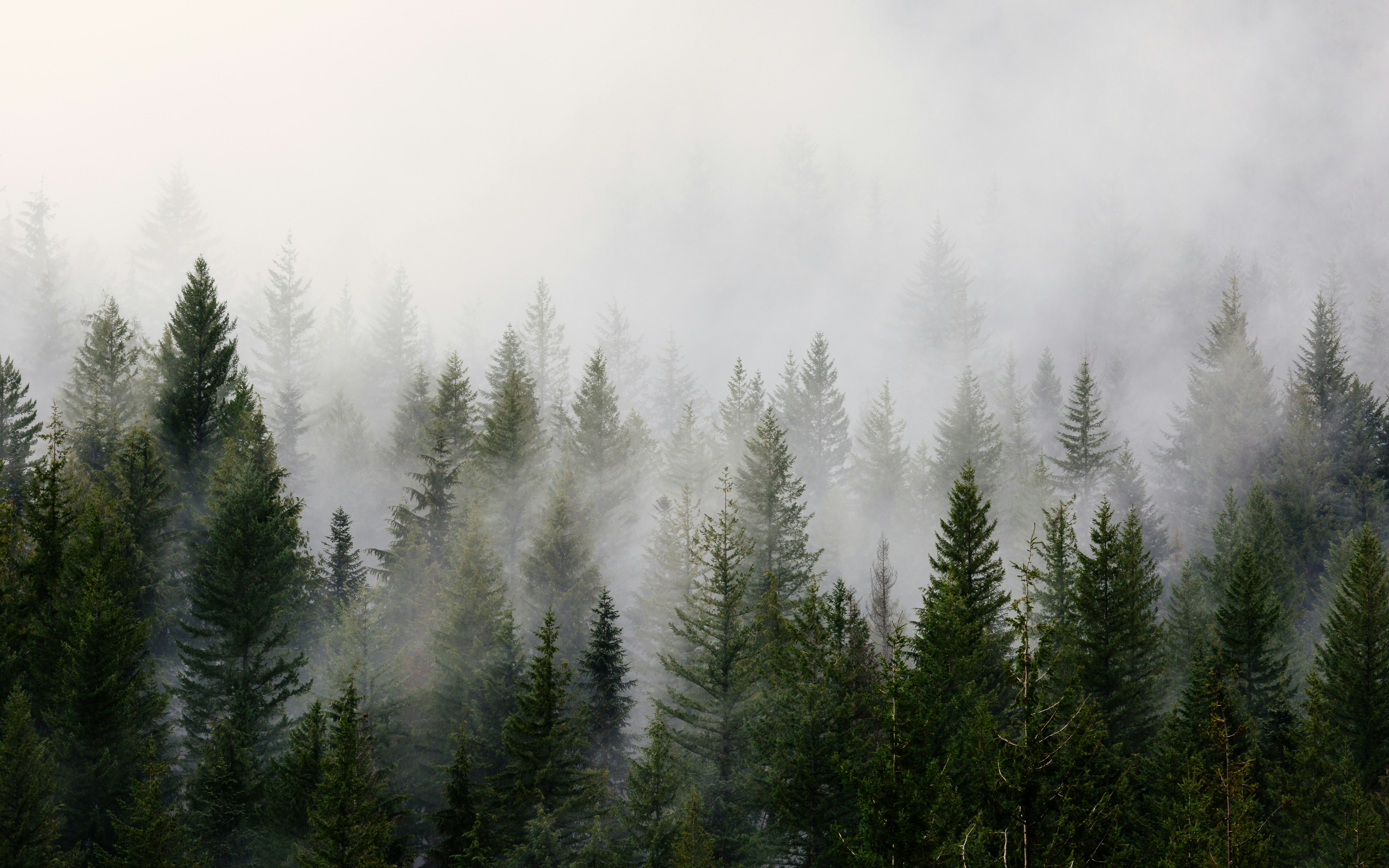 2. Green Pine Trees With Fog Fog Zoom Background