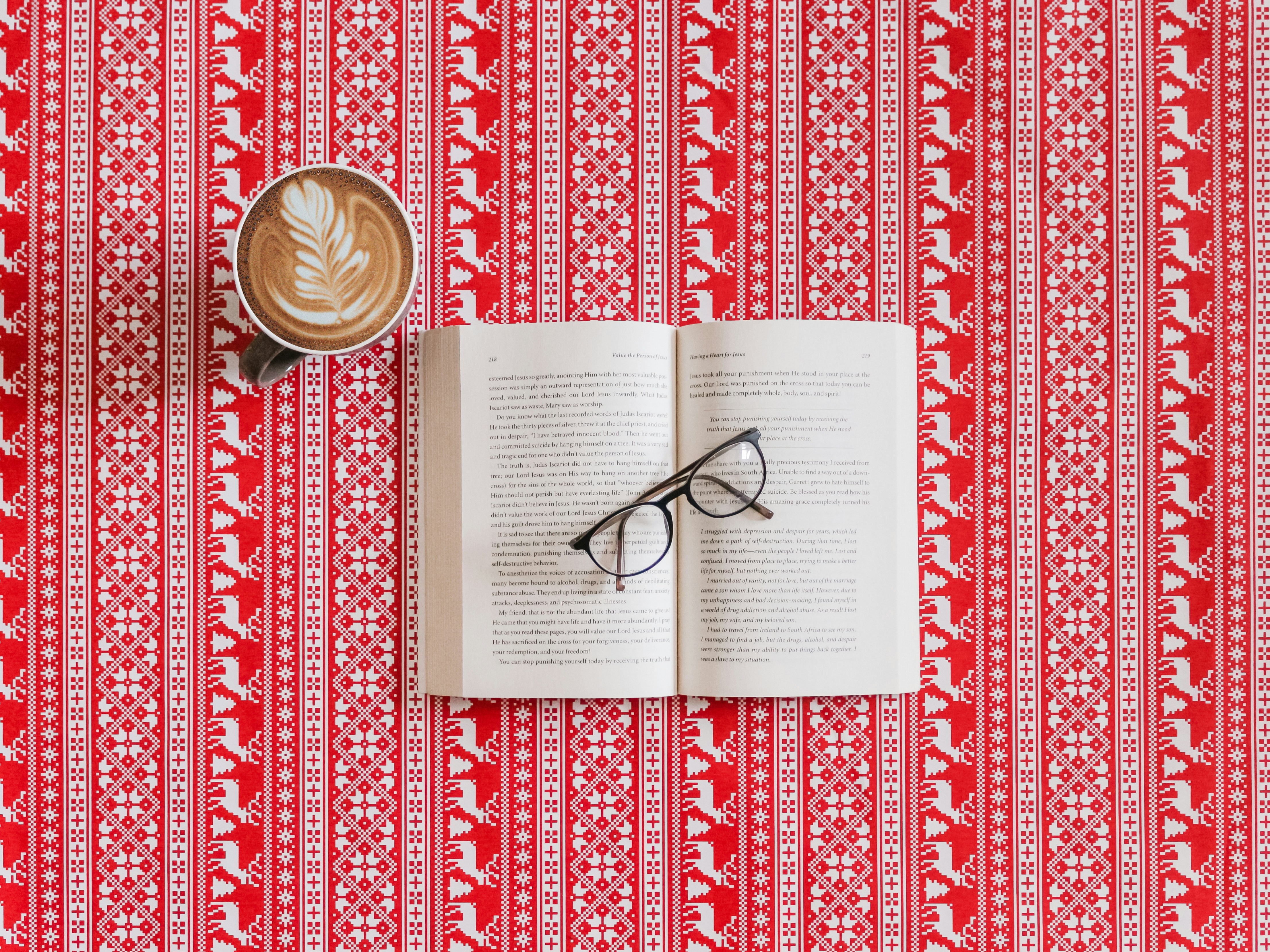 7. Book Near Eyeglasses And Cappuccino Frosty The Snowman Zoom Background