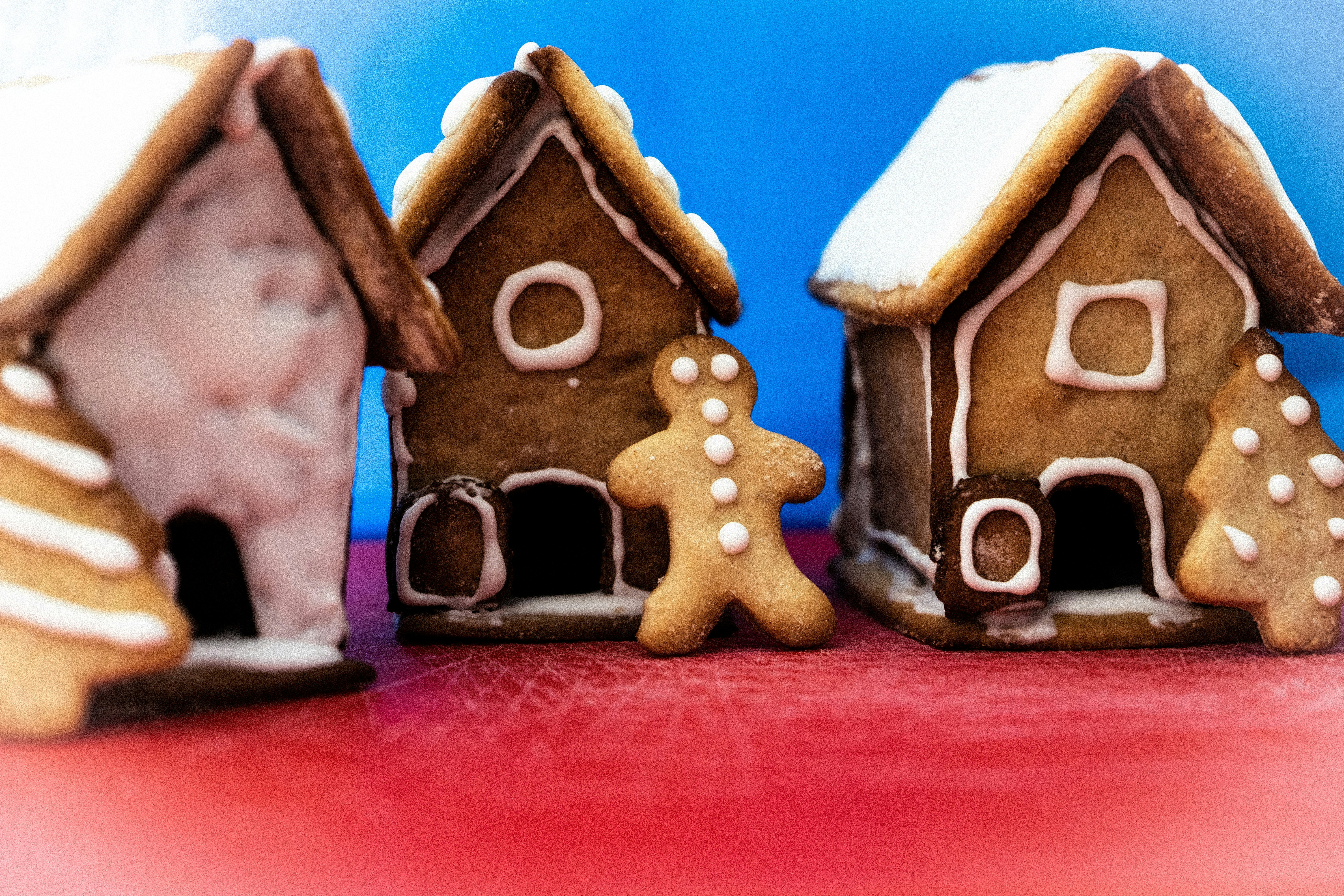 shallow focus photography of christmas house decors gingerbread zoom background