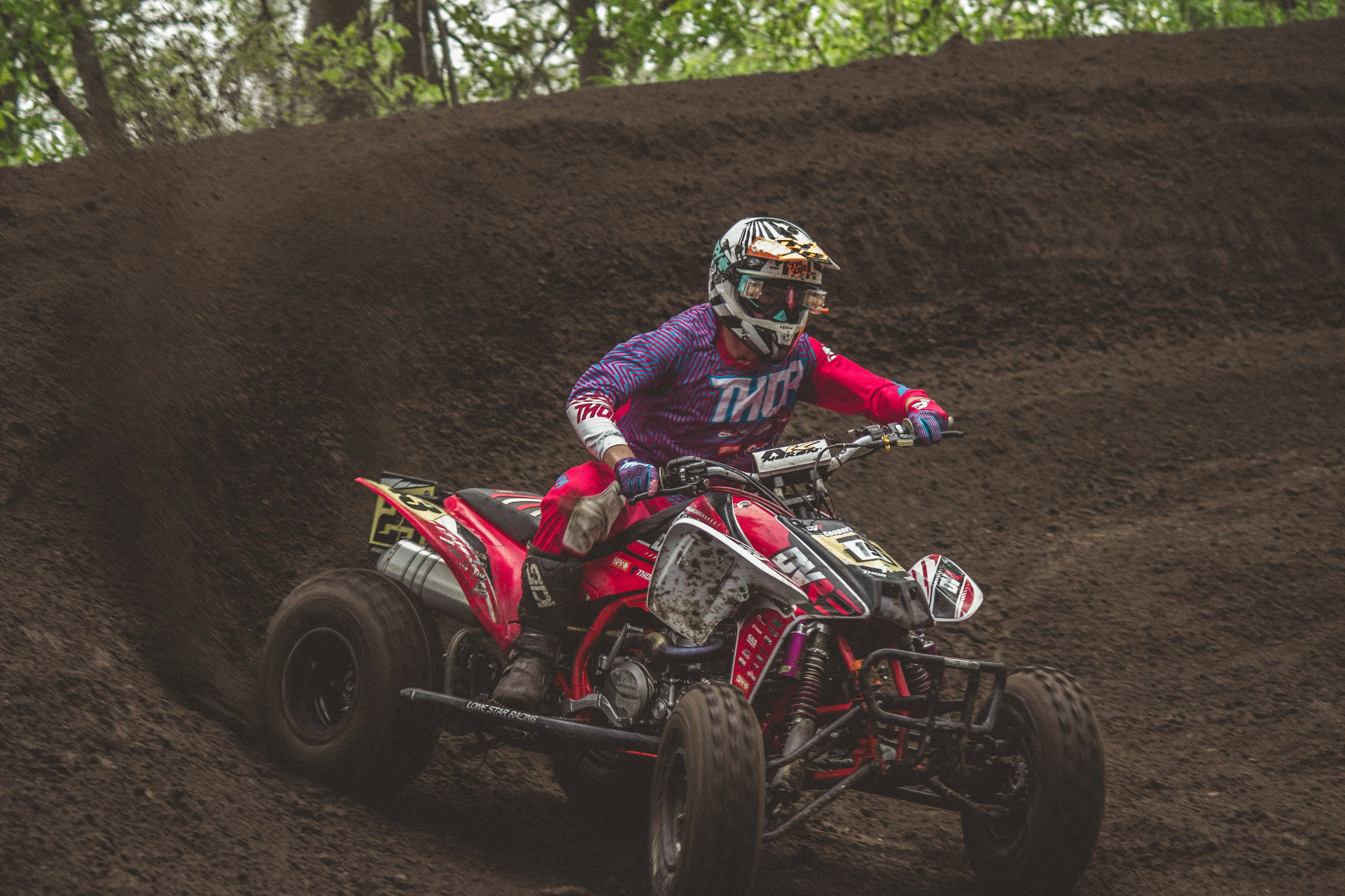 9. Man Riding Atv Outdoor Near Trees Honda Zoom Background