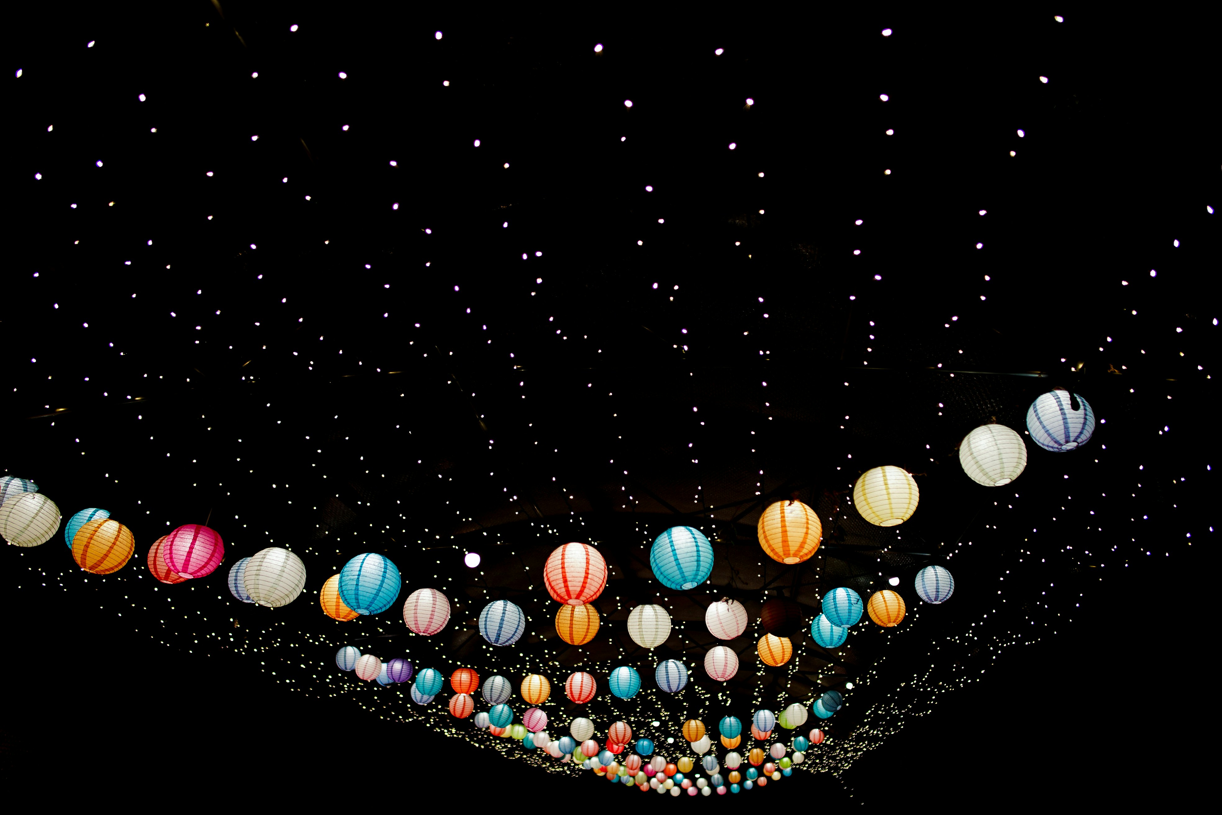 6. Assorted-Color Japanese Lantern Lot With Black Background Illuminated Zoom Background