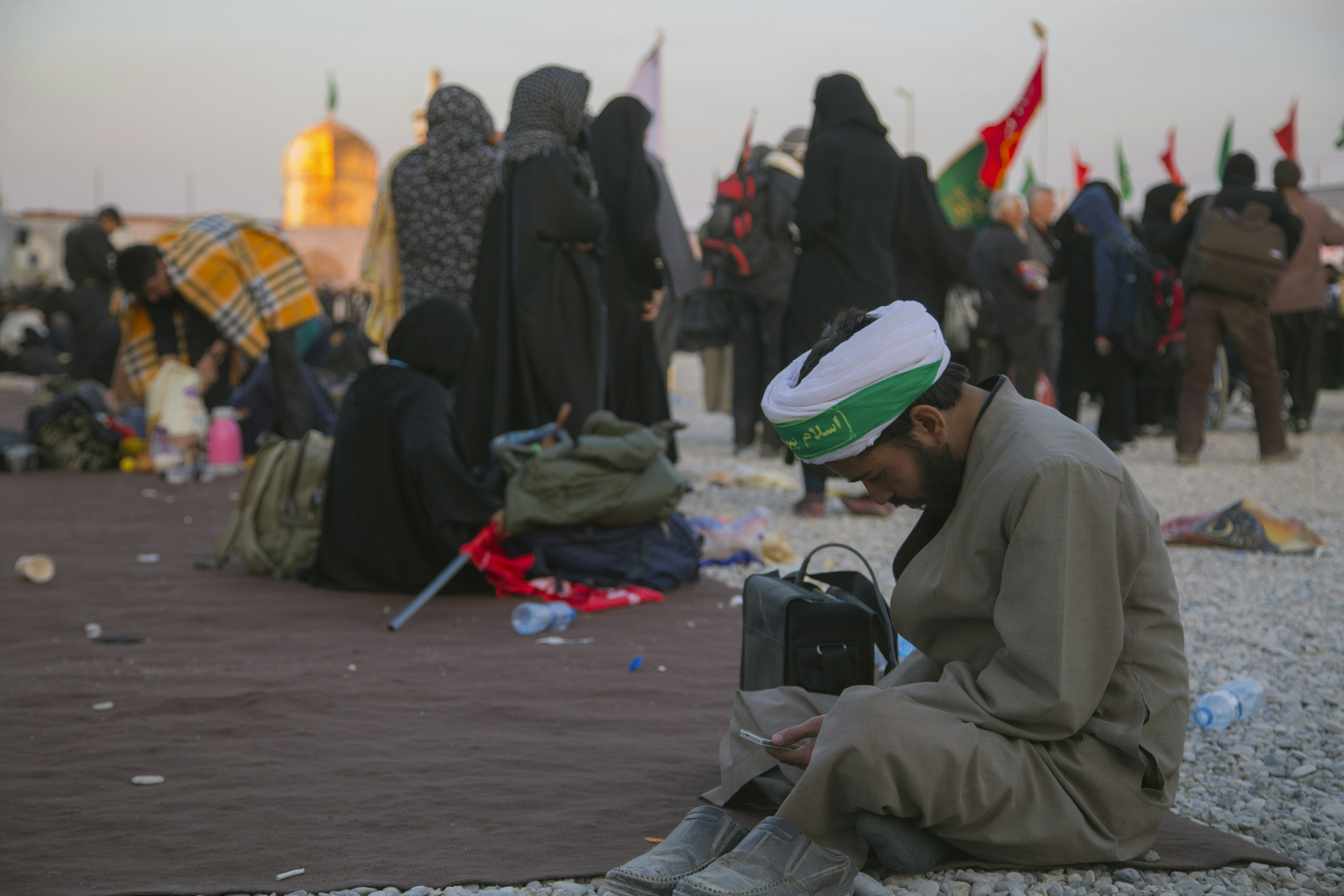 10. Man Sitting On Ground Wearing Gray Thobe Dress Iranian Zoom Background