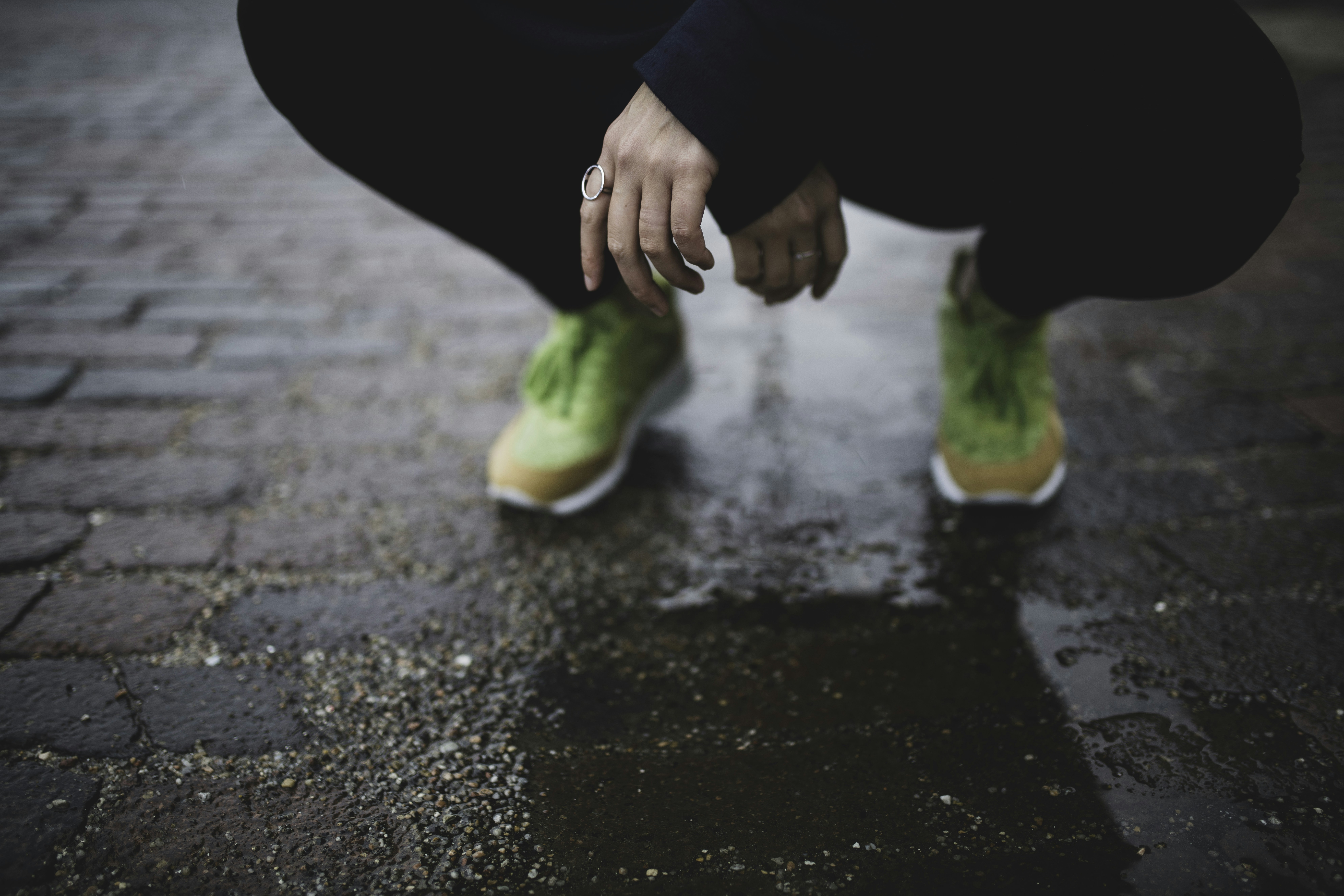 8. Person Squatting On Brick Road During Day Kansas Zoom Background