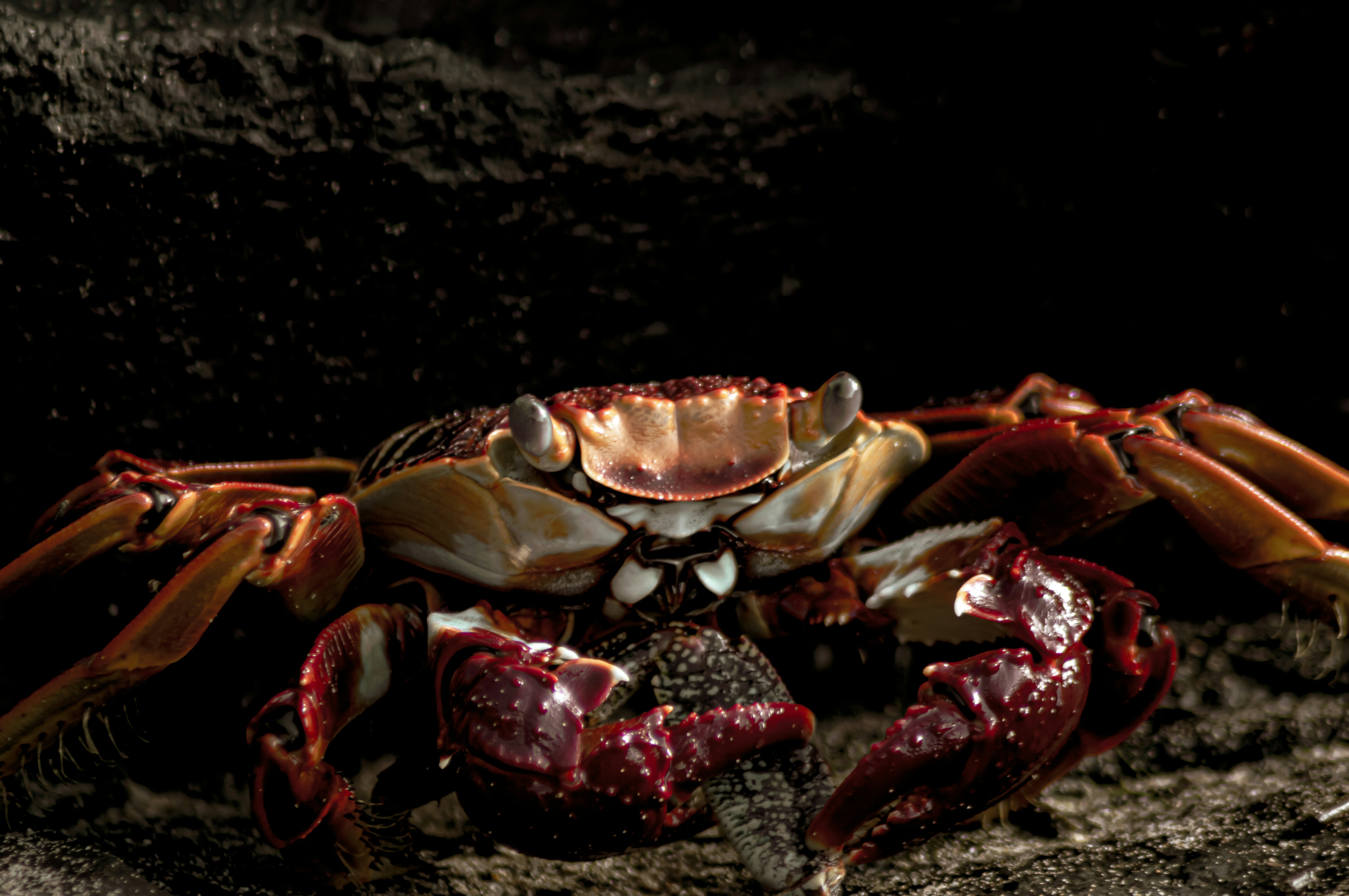 6. Red And Brown Crab On Black Sand Lobster Zoom Background