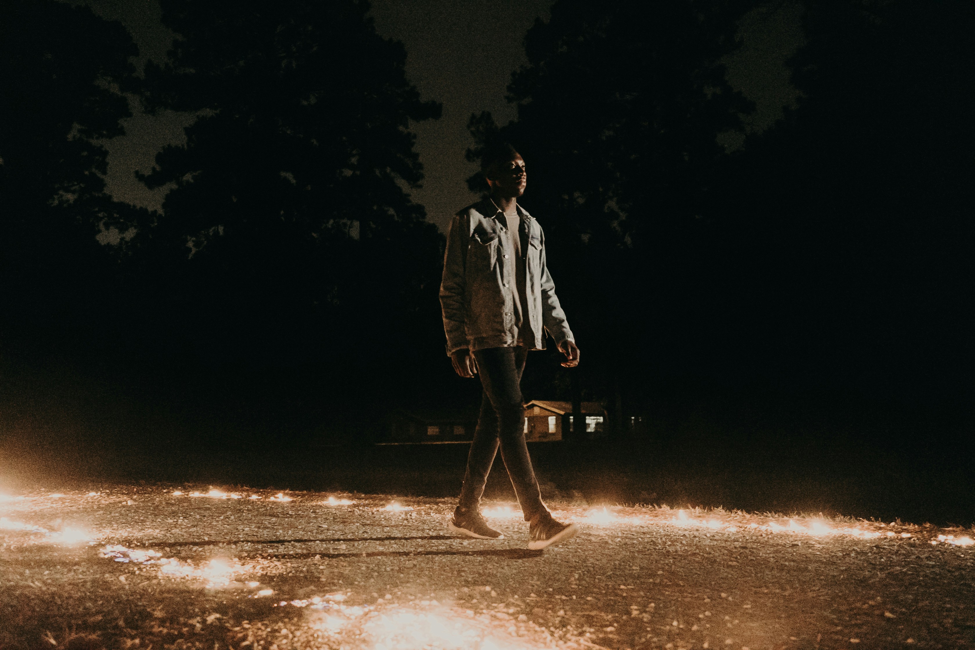 9. Man Walking Near Trees During Night Louisiana Zoom Background