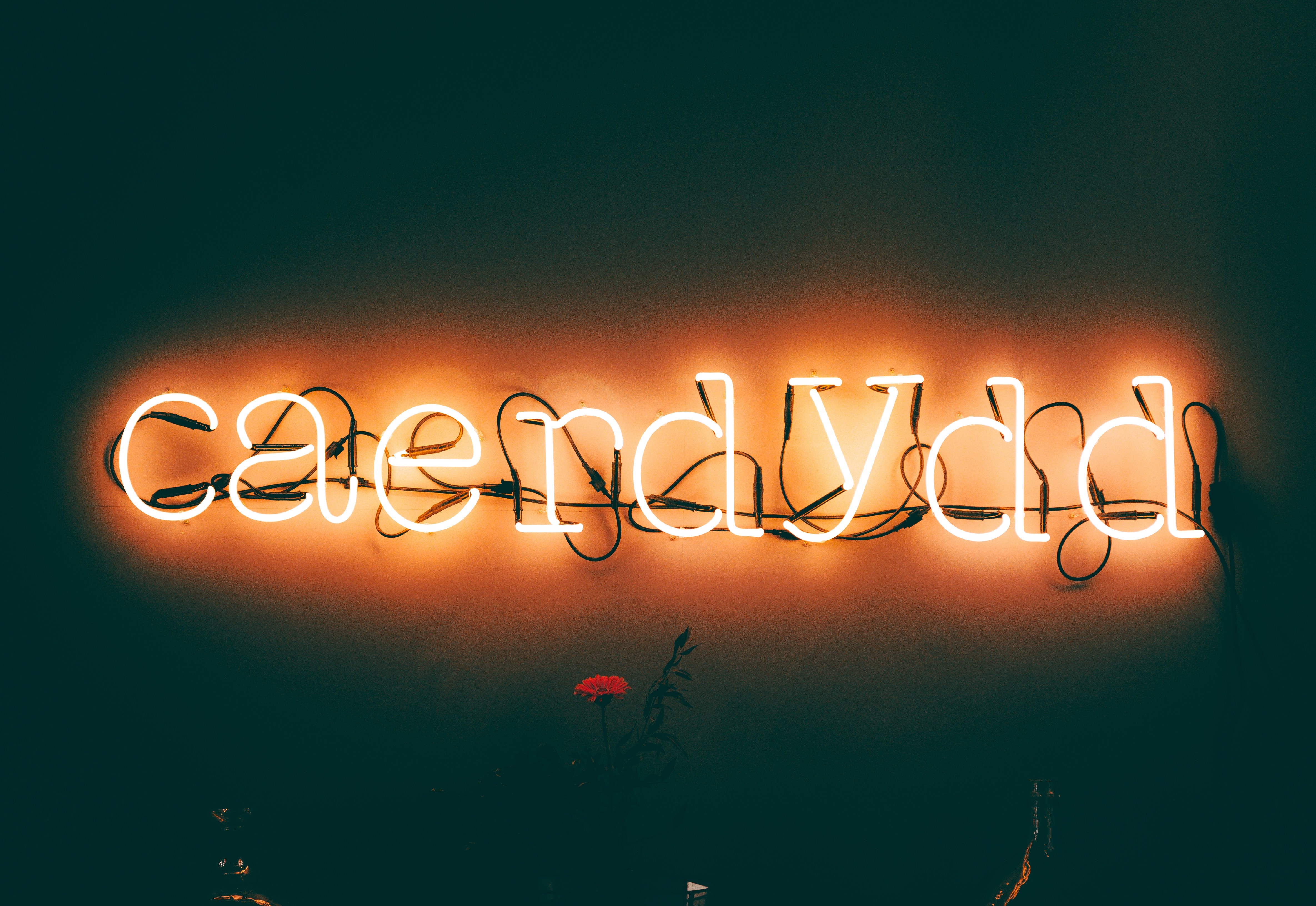 3. Yellow Caerdydd Neon Signage Turned On Luminescence Zoom Background