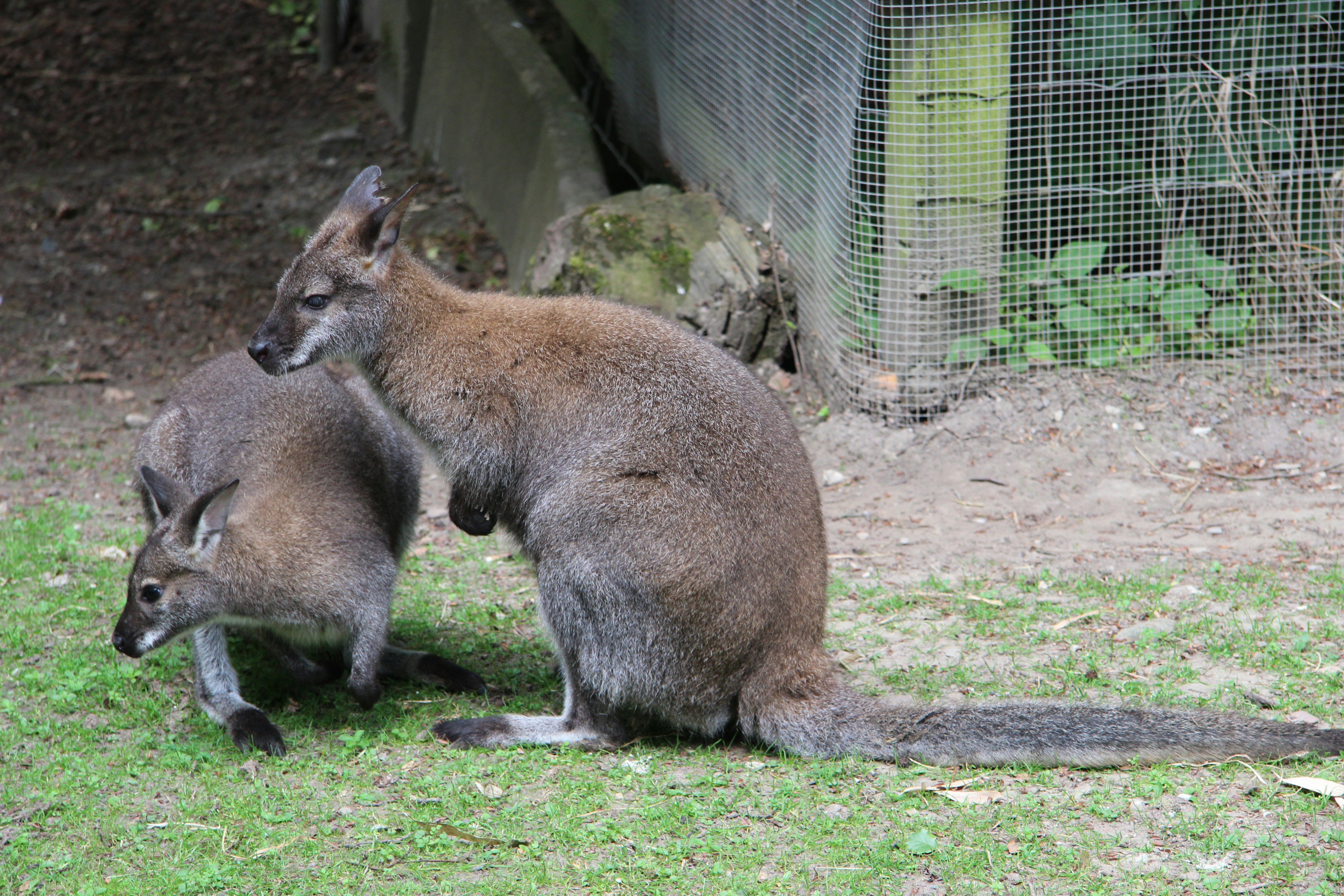 two brown kangaroo on green grass mammal zoom background