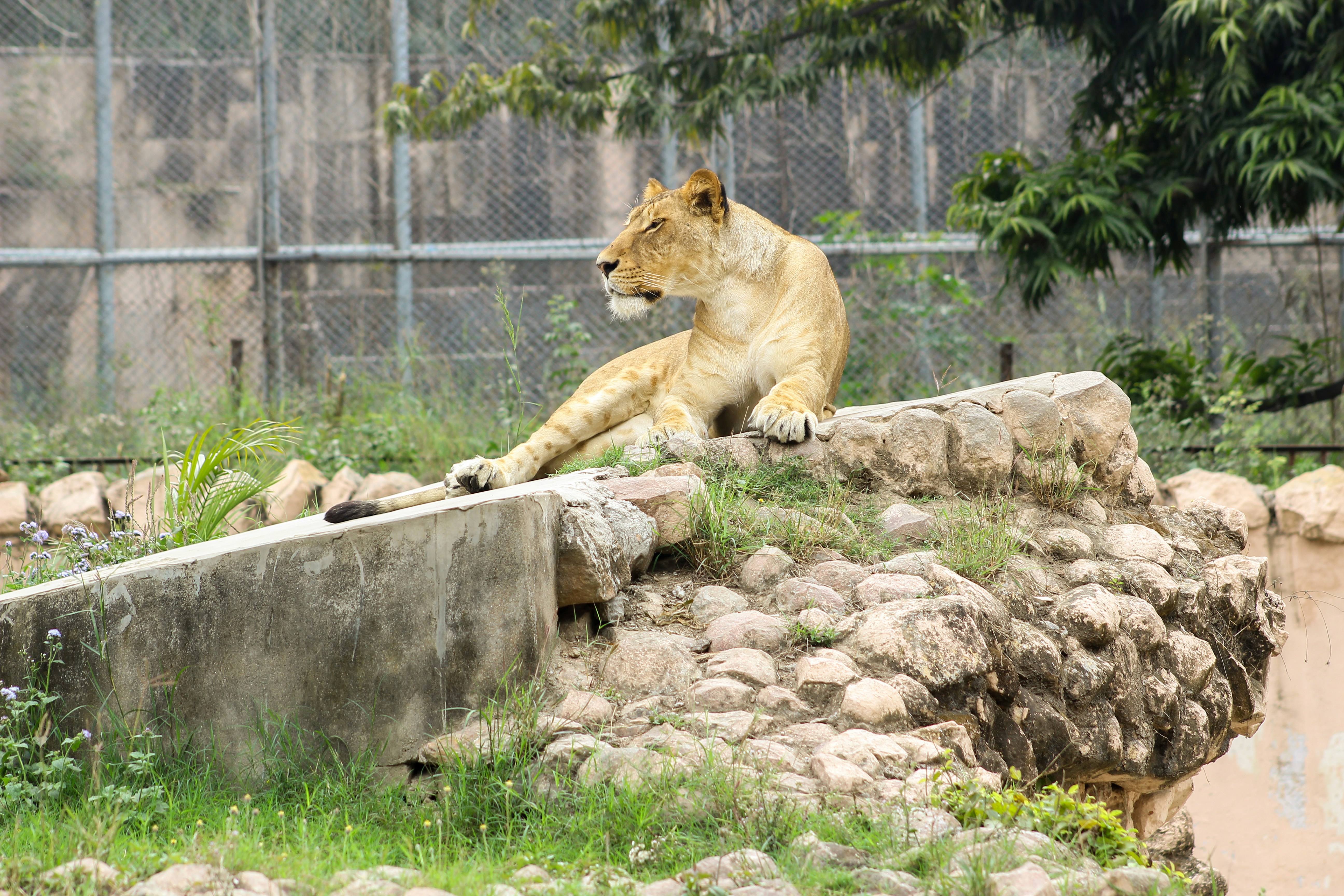 lioness inside cage mammal zoom background