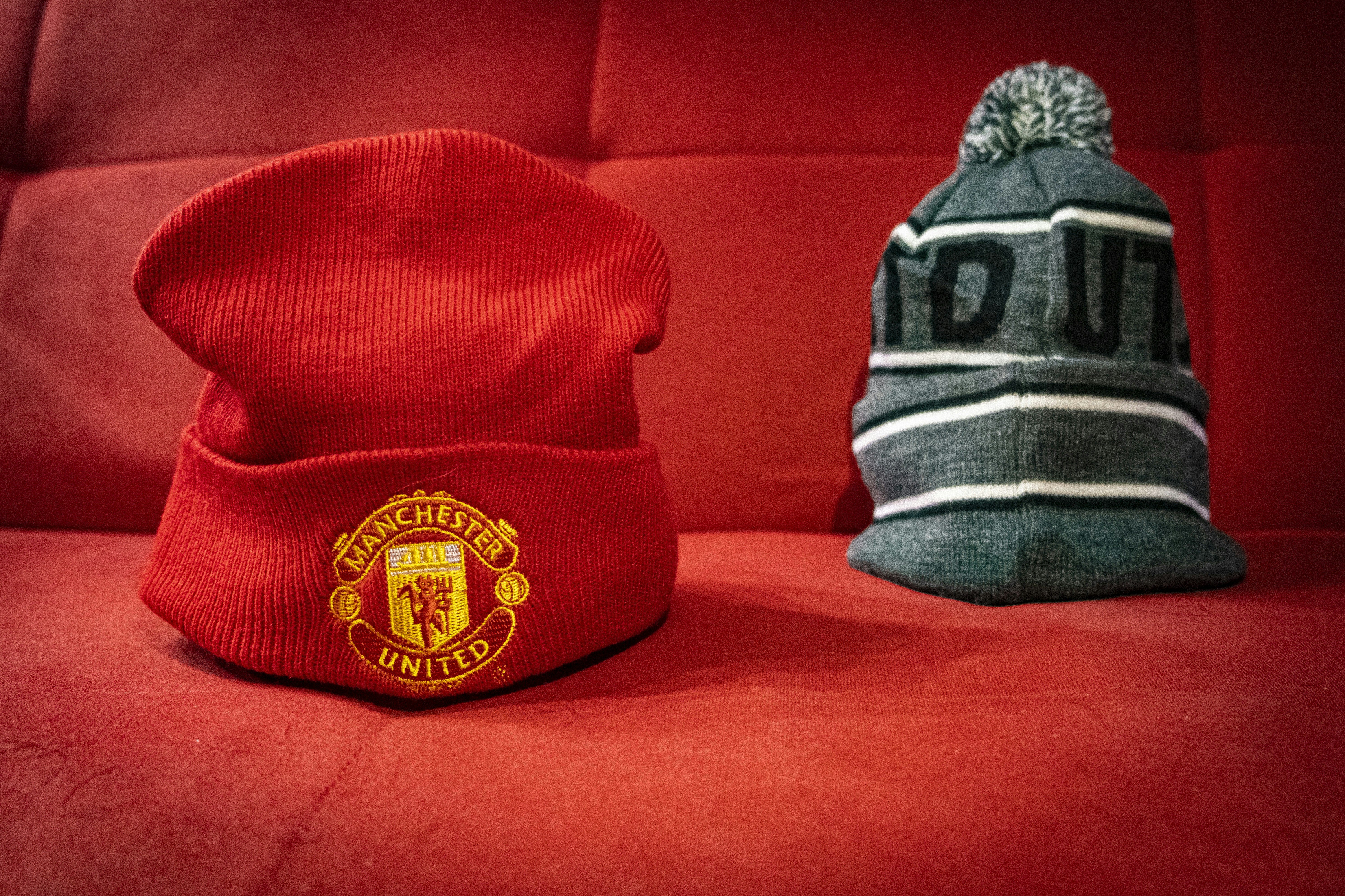 3. Gray And Black Knit Cap Manchester United Zoom Background
