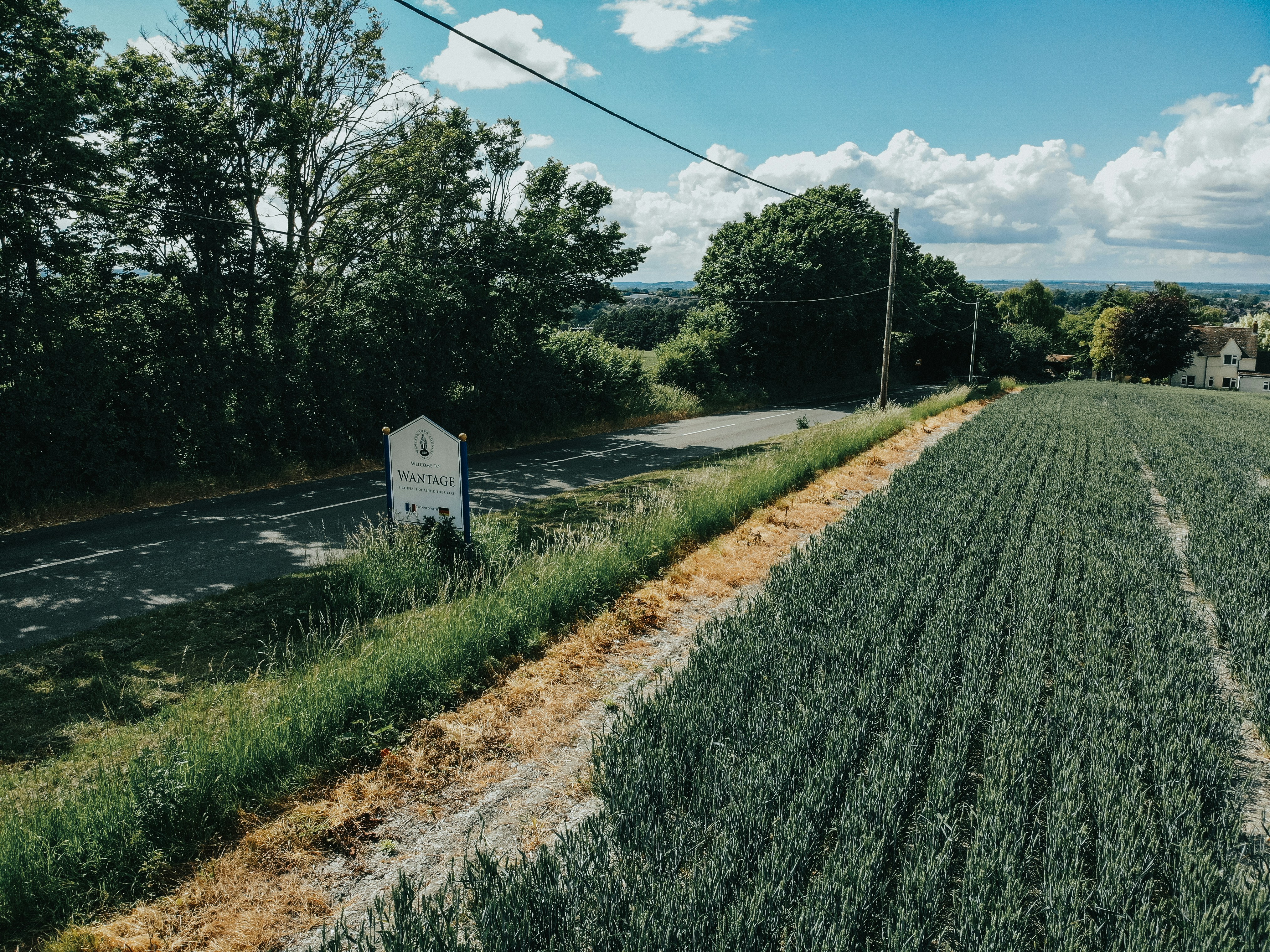 5. Green Grass Field Near Road Under Blue Sky During Daytime Muted Zoom Background