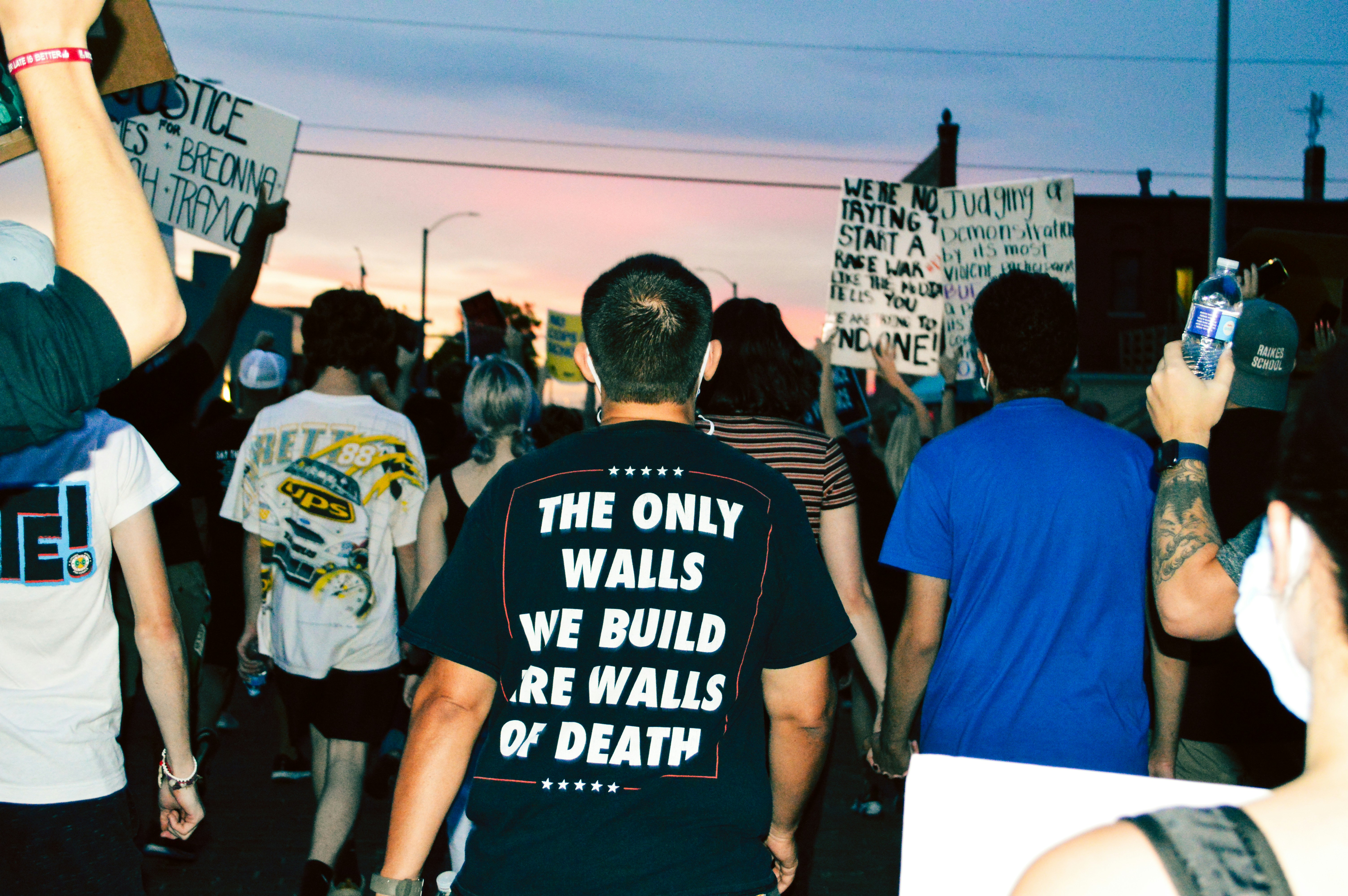 7. People Holding White And Black Signage During Daytime Nebraska Zoom Background