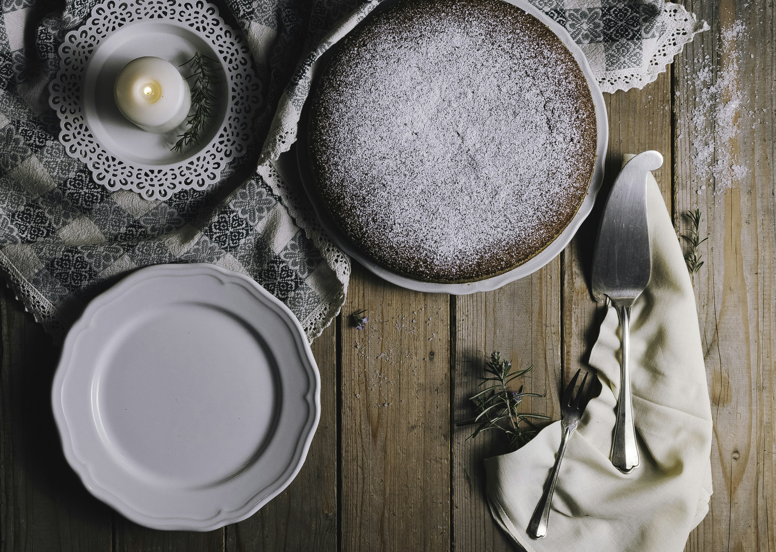 10. Pie On White Ceramic Plate Beside White Tealight Candle And Cake Server Plate Zoom Background