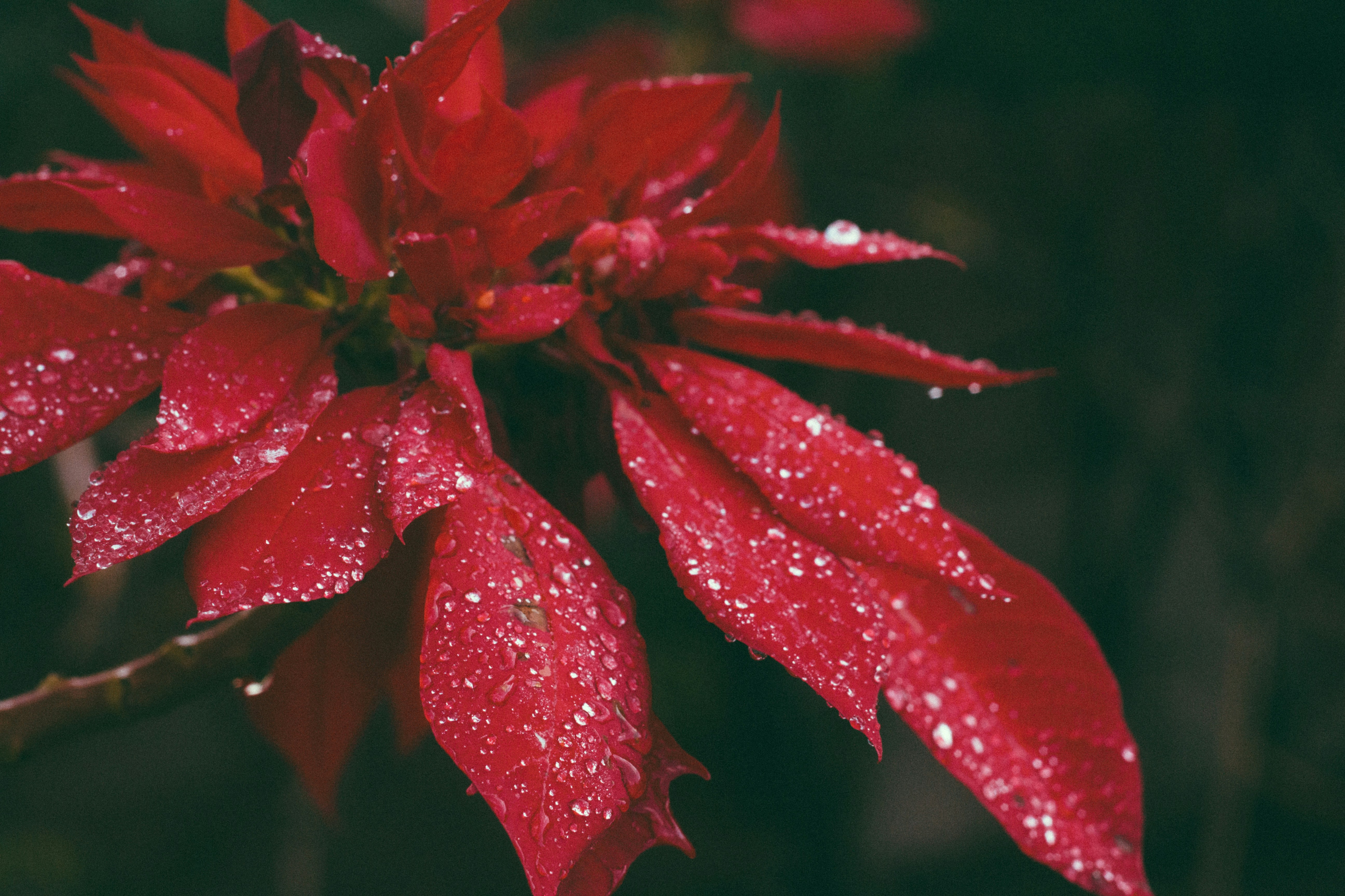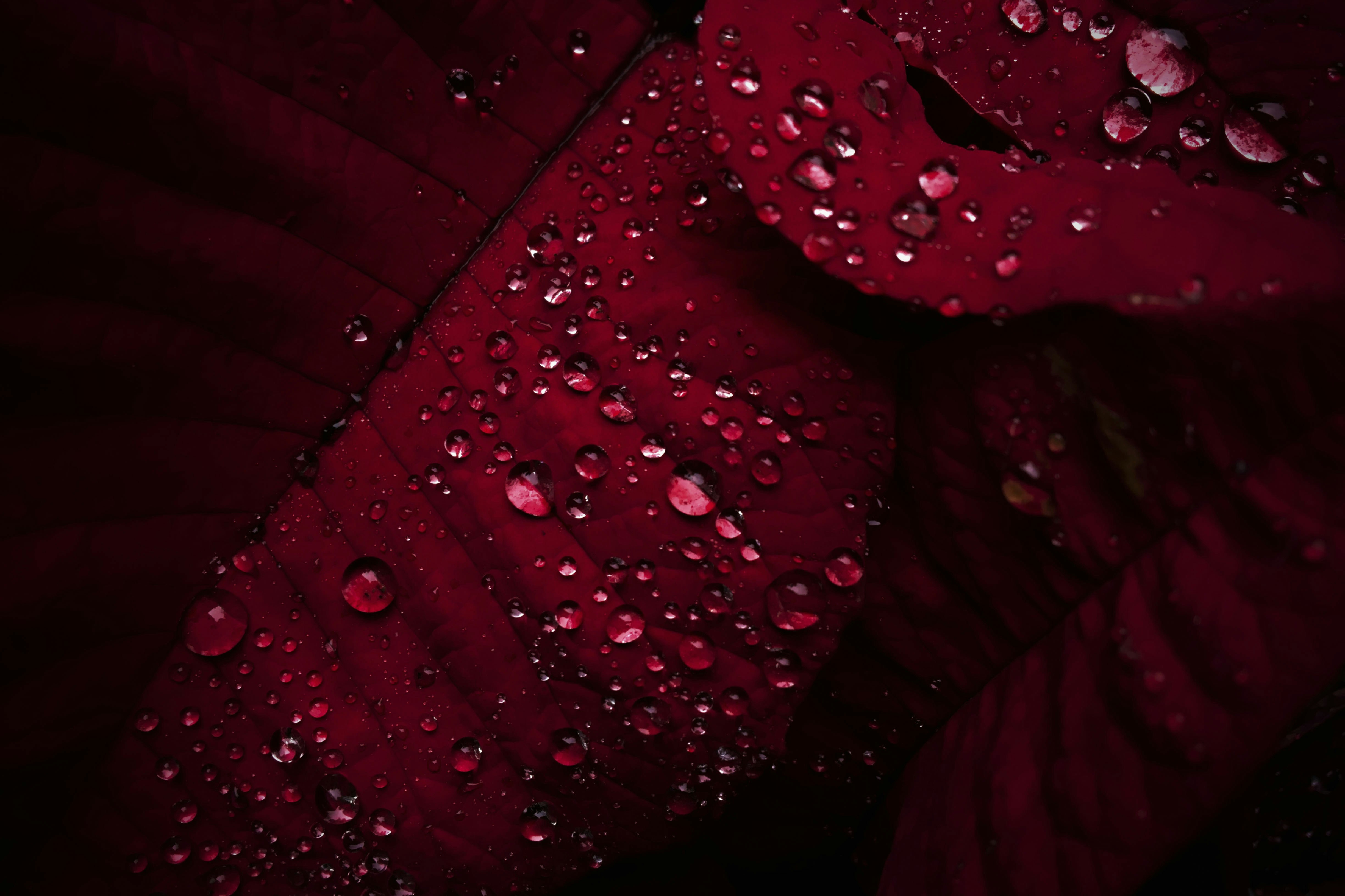 8. Water Dews On Red Plant Leaves Poinsettia Zoom Background