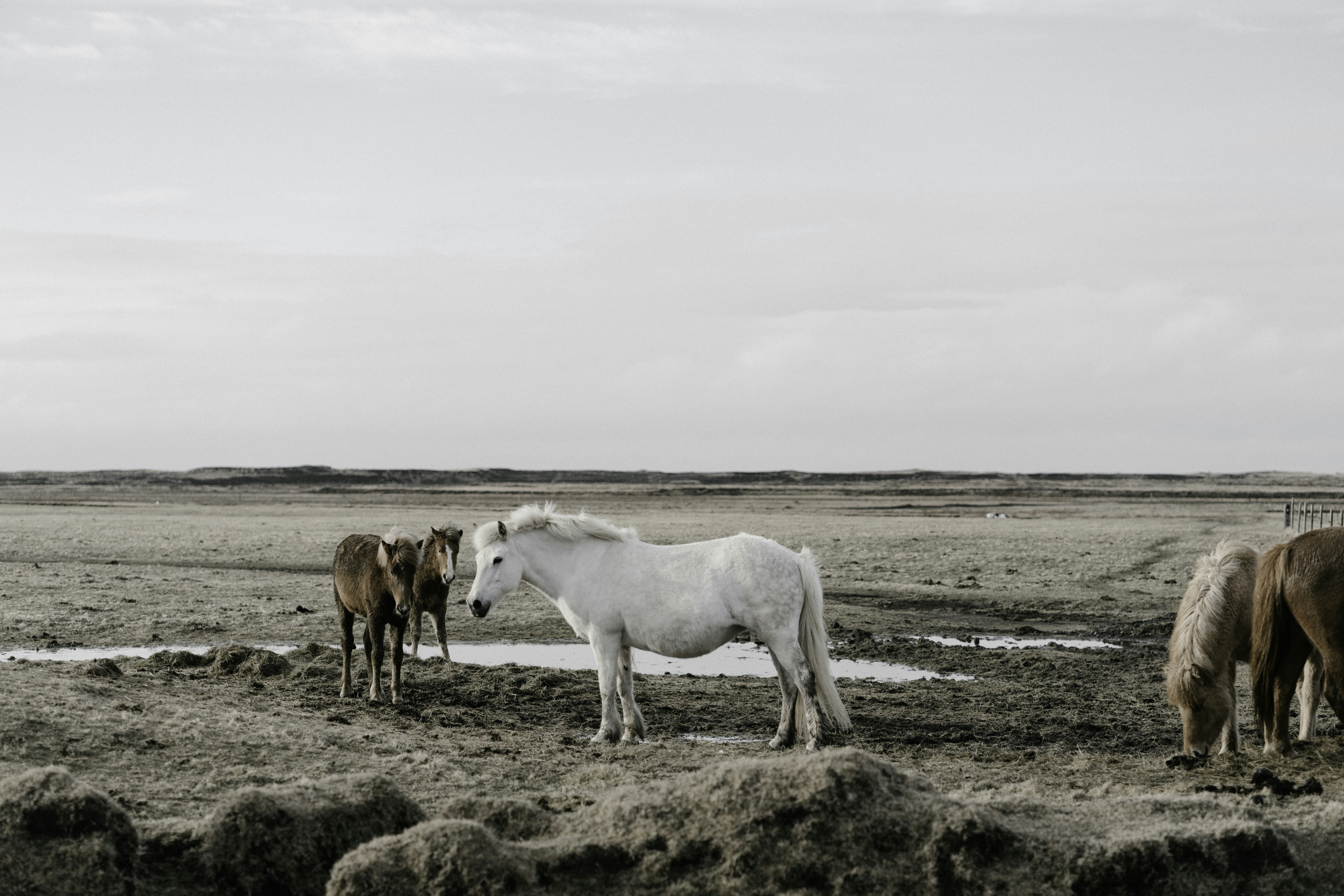 4. Herd Of White And Brown Donkeys On Snow-Covered Land Pony Zoom Background