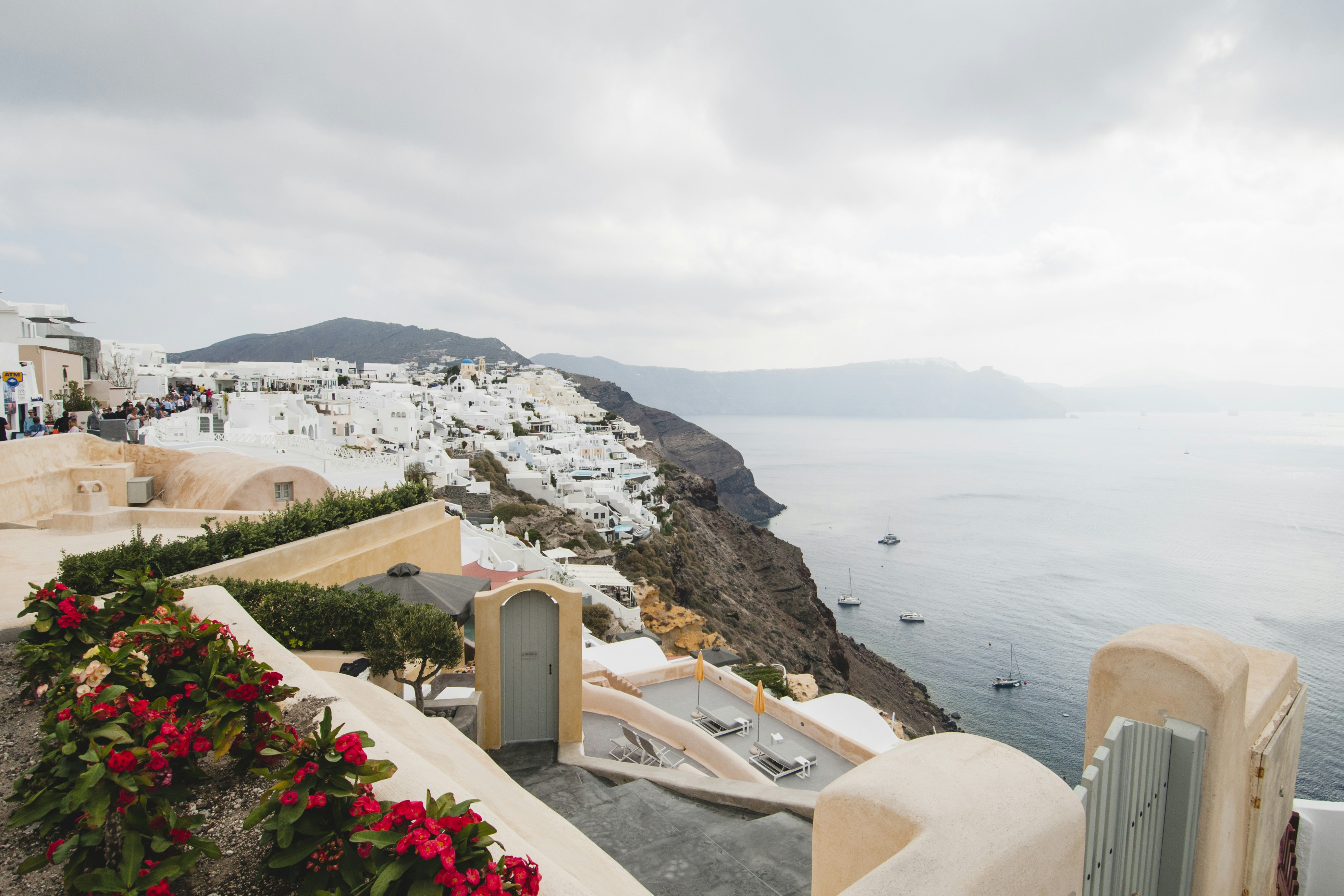 2. Aerial View Photography Of Cliff Santorini Zoom Background