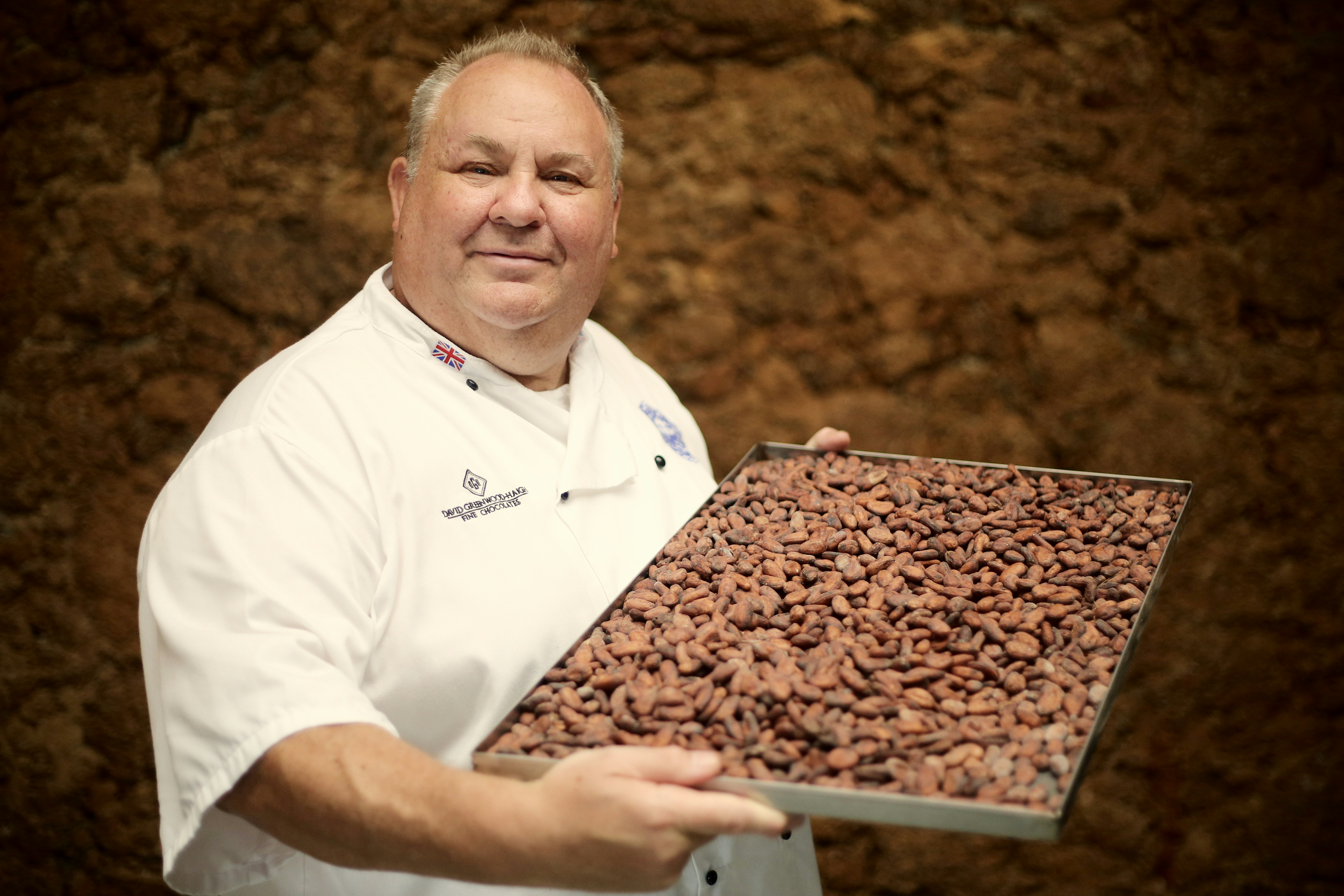 1. Man Holding Gray Metal Tray With Beans Sao Tome And Principe Zoom Background