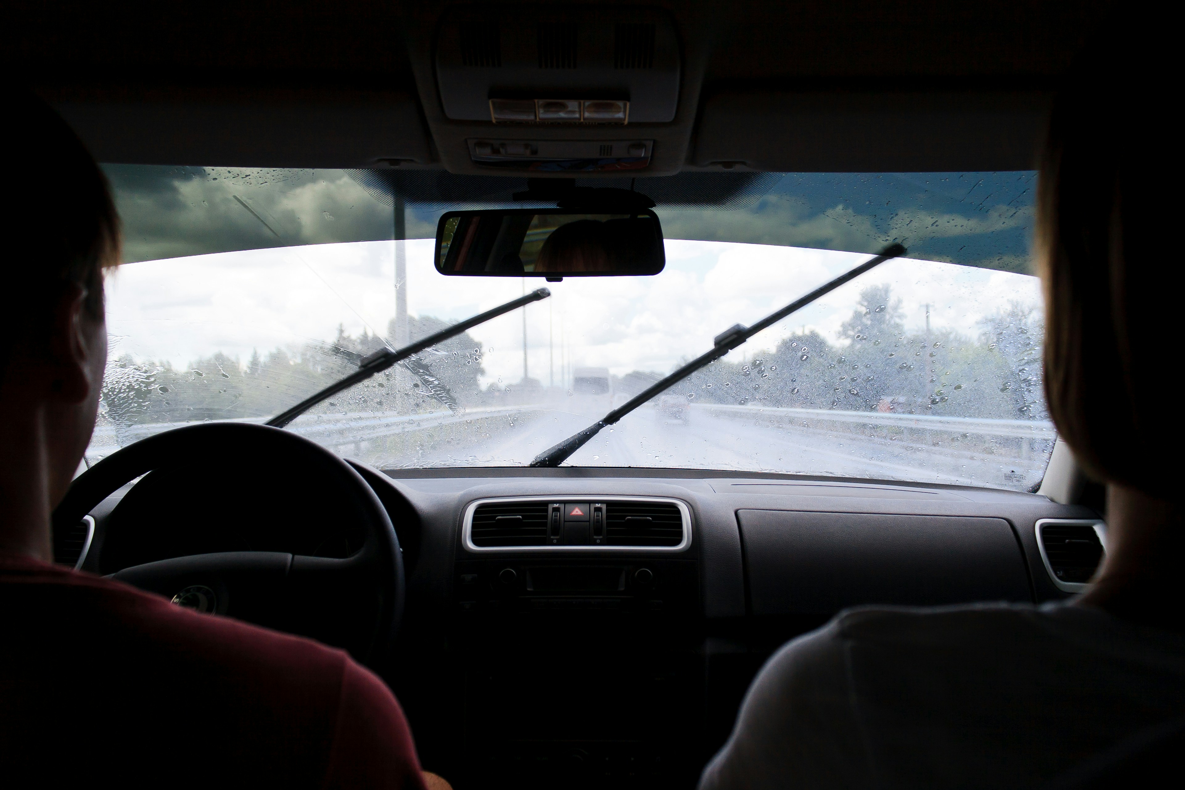 7. Two People In Car On Wet Road In Rainy Day Skoda Zoom Background