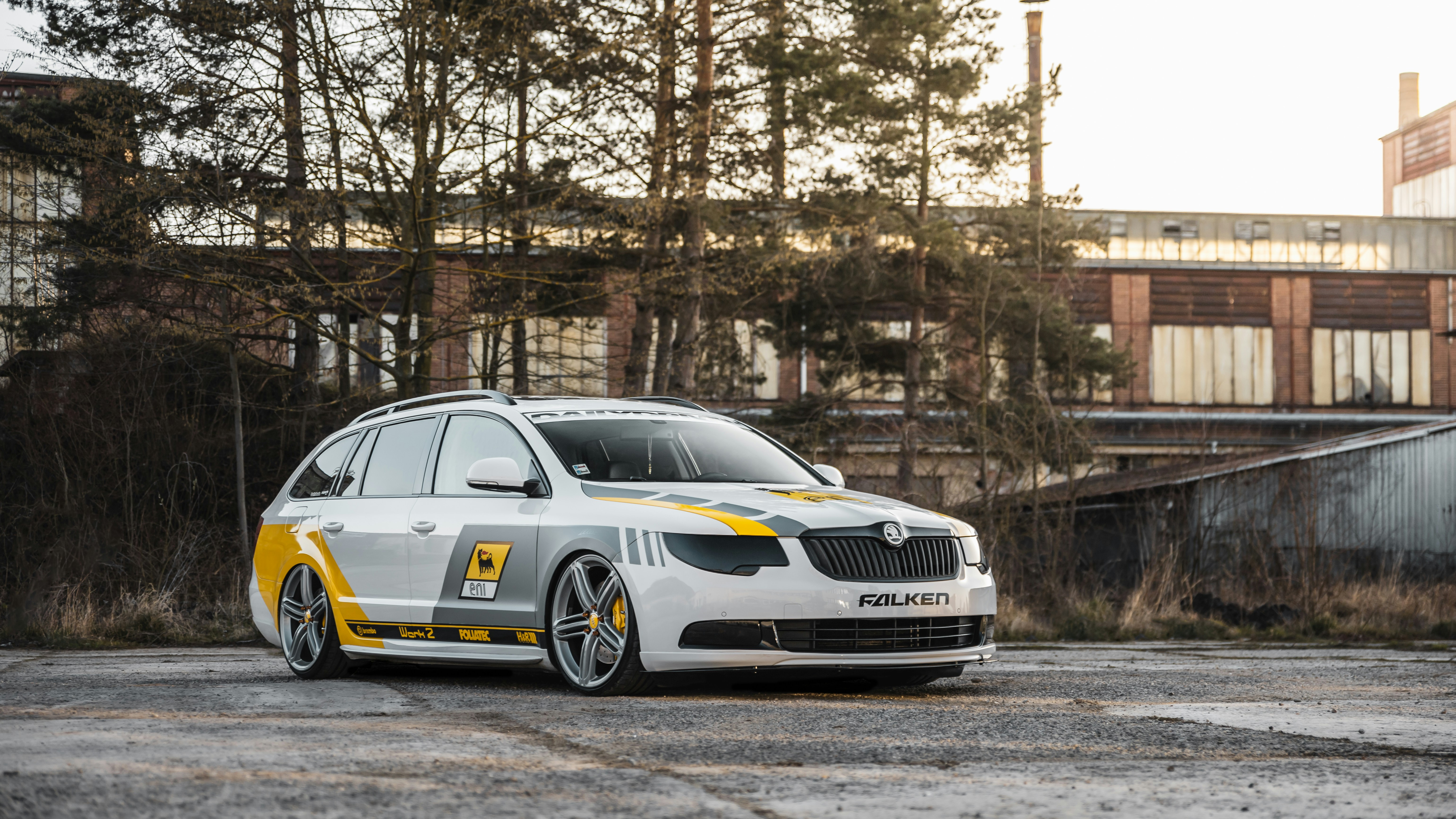 4. Green Sedan Parked Beside Gray Concrete Wall Skoda Zoom Background
