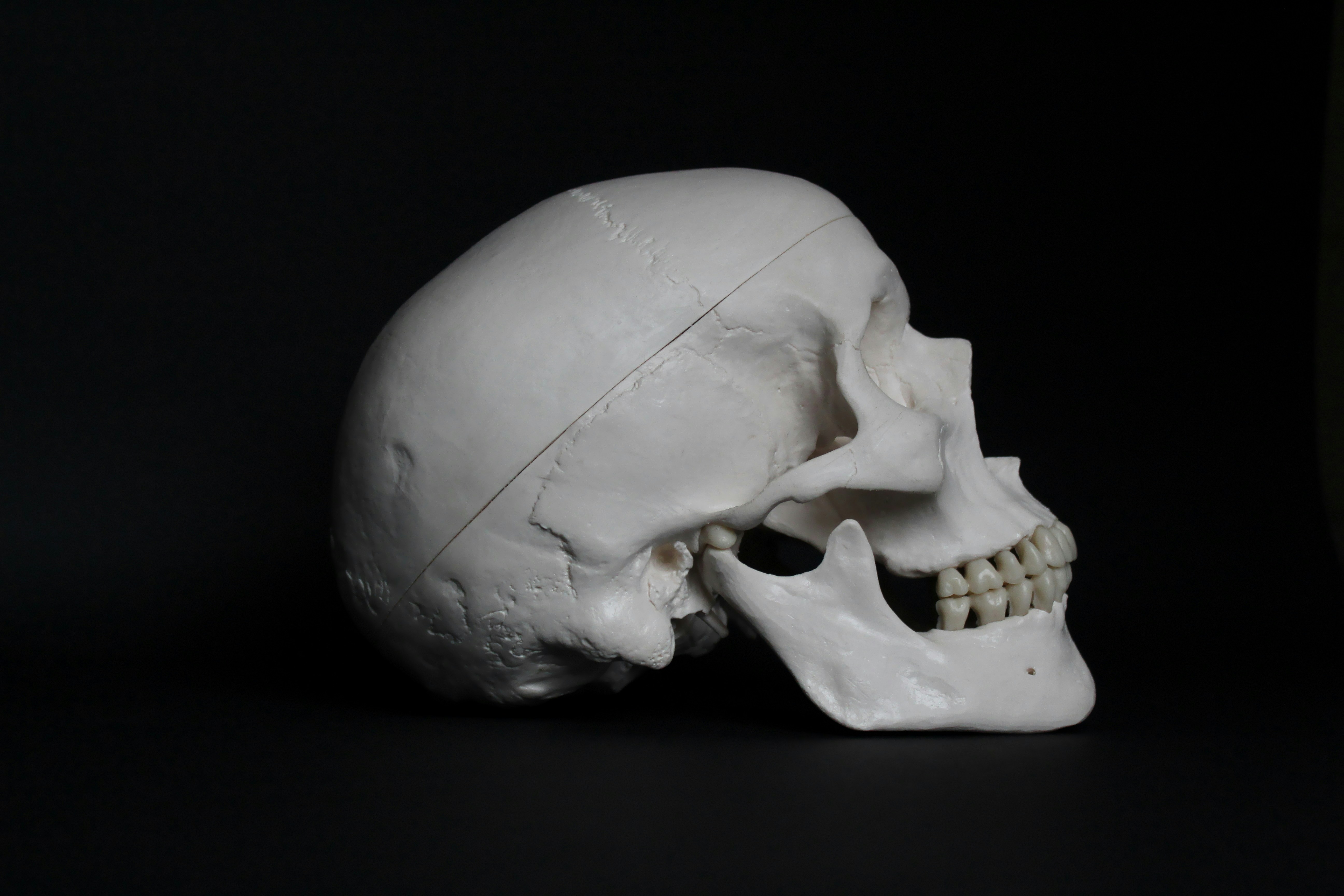 3. White And Black Skull Figurine On Black Surface Skull Zoom Background