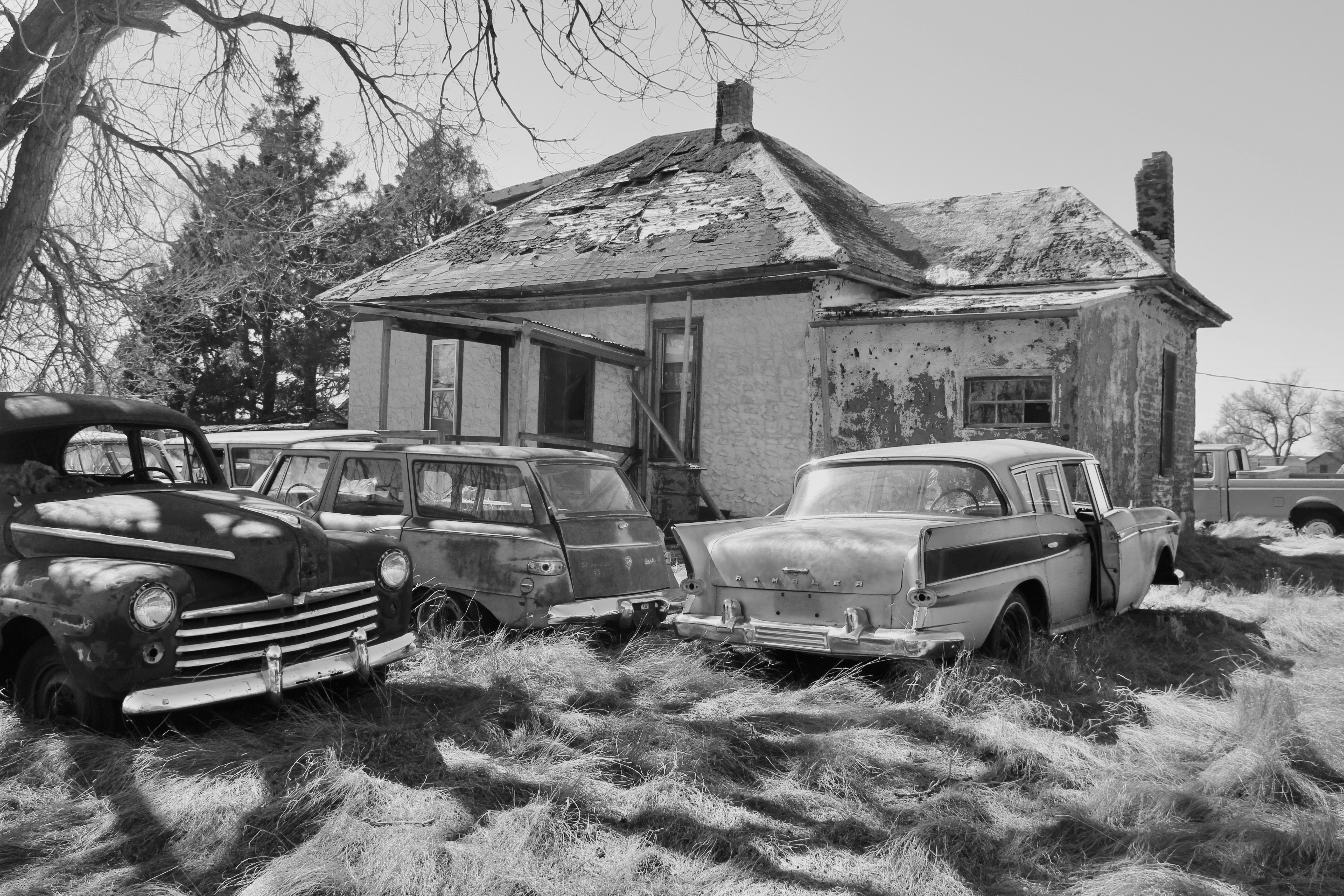 2. Grayscale Photo Of 2 Cars Parked Beside House South Dakota Zoom Background