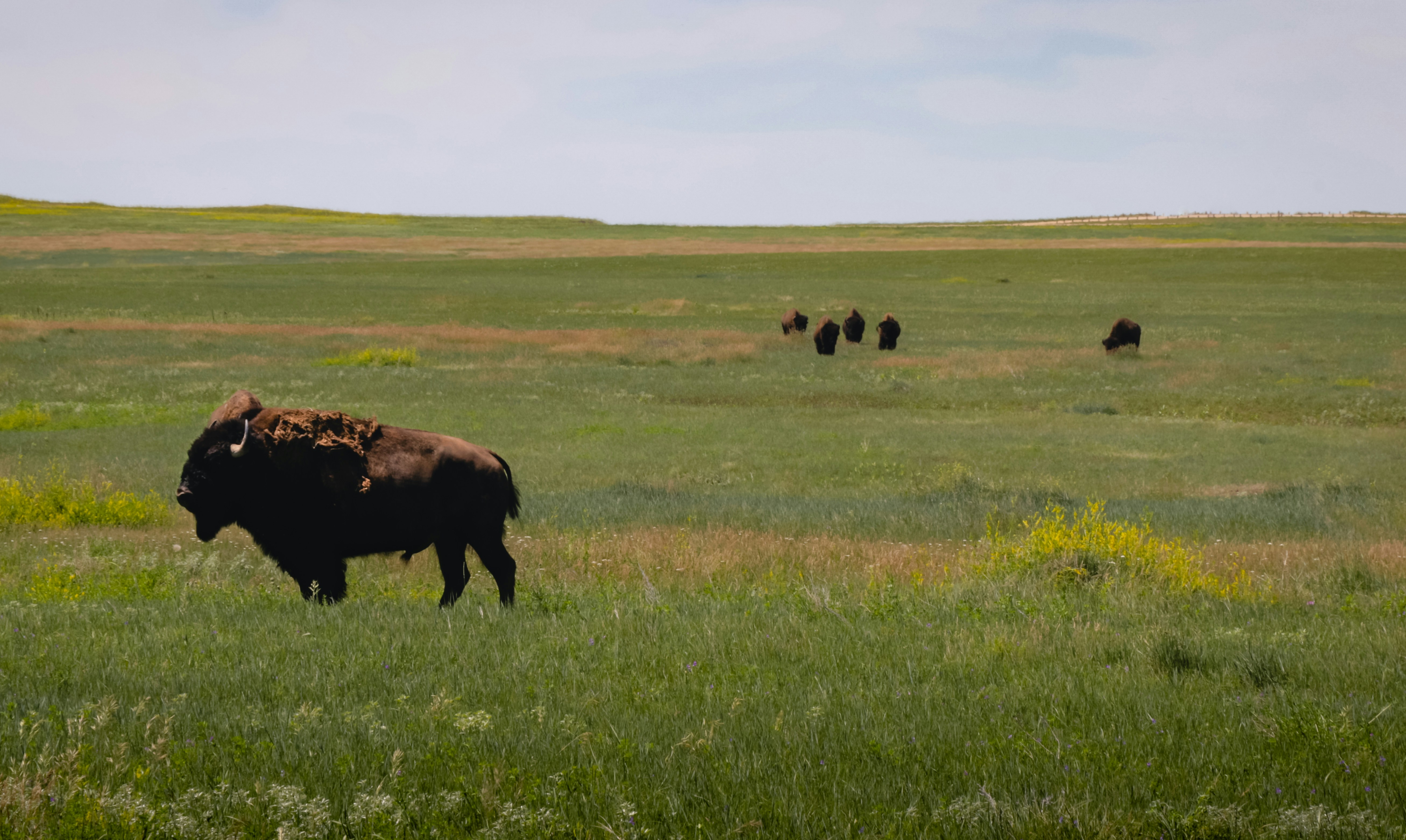 6. Bison Standing On Grass Field South Dakota Zoom Background