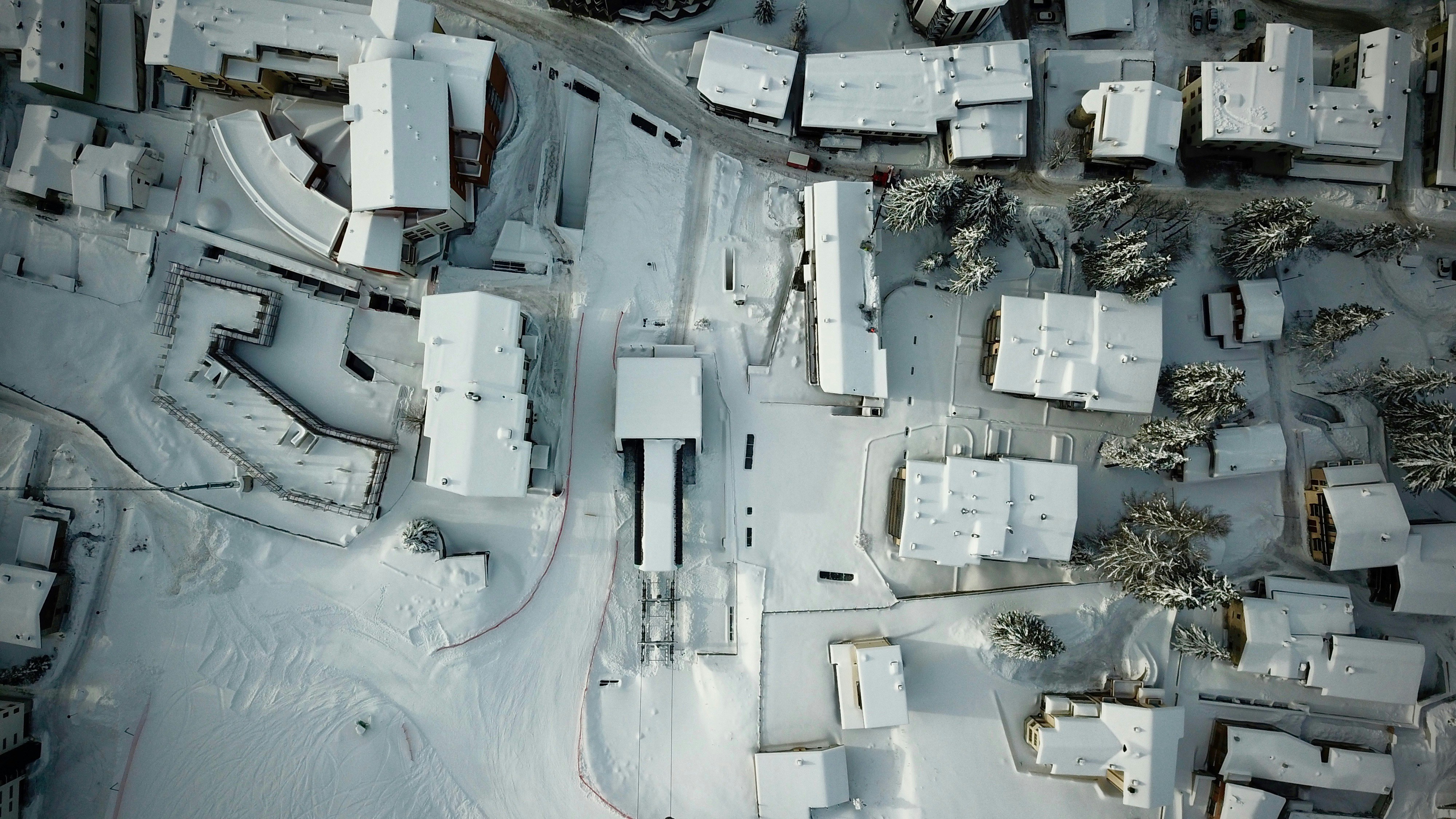 3. Aerial View Photo Of Snow Capped Houses Space Station Zoom Background