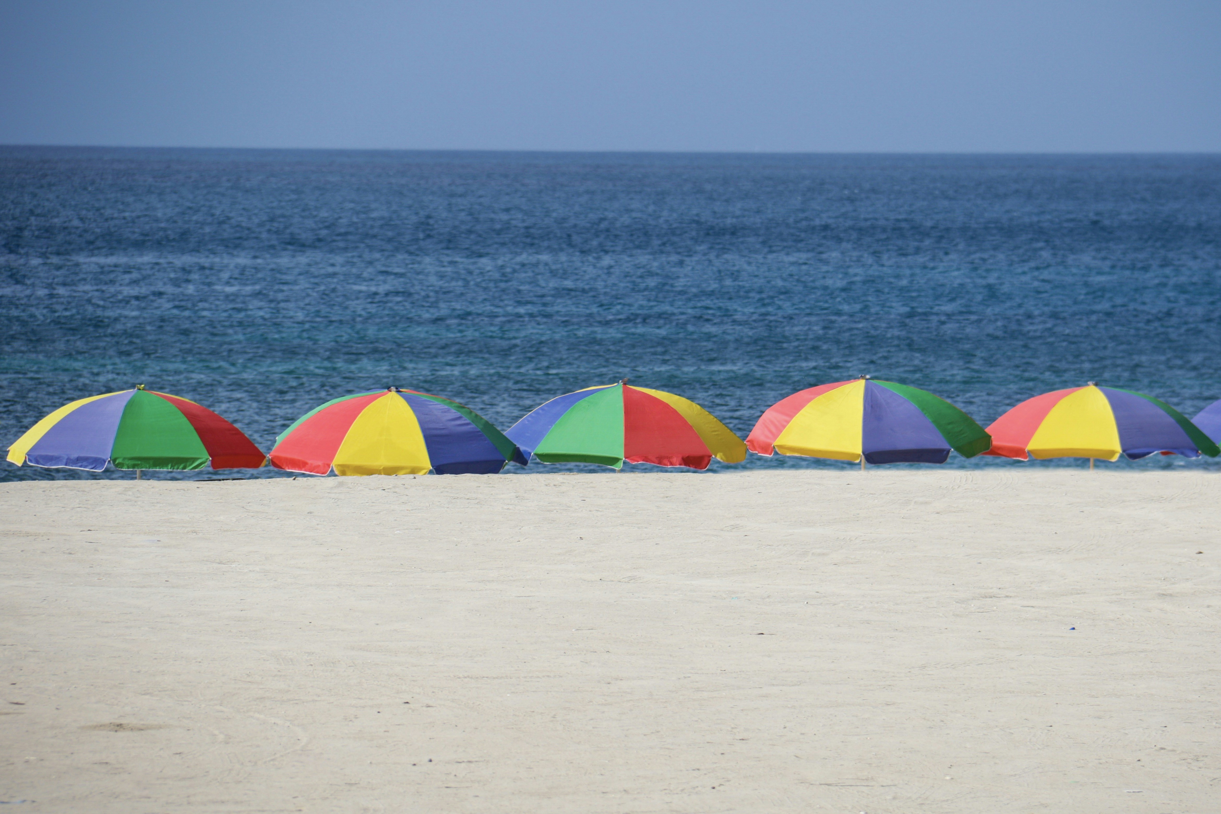 2. Five Parasols At The Shore During Day St. Lucia Zoom Background