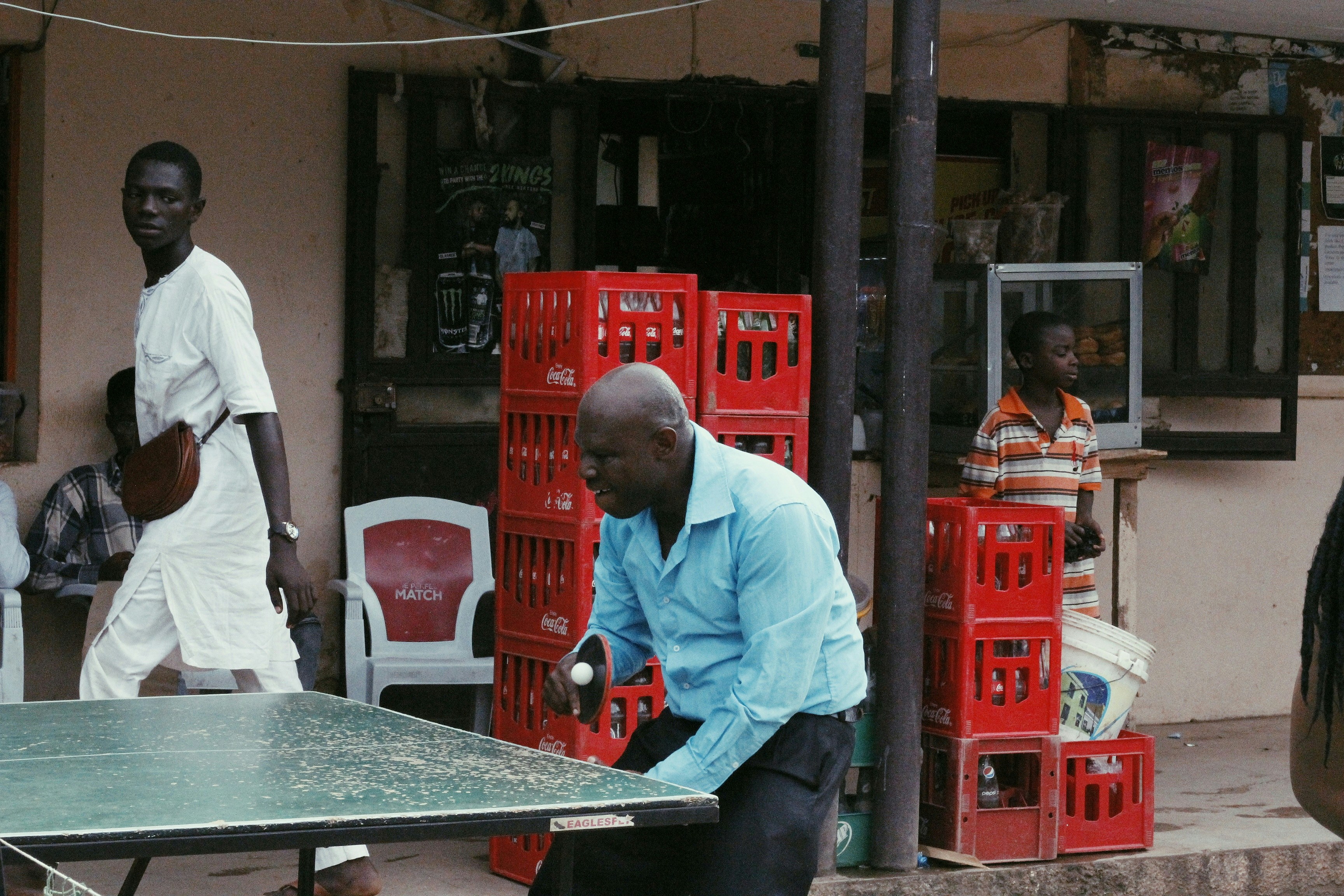 9. Man In White Dress Shirt And Gray Pants Standing Beside Table Table Tennis Zoom Background