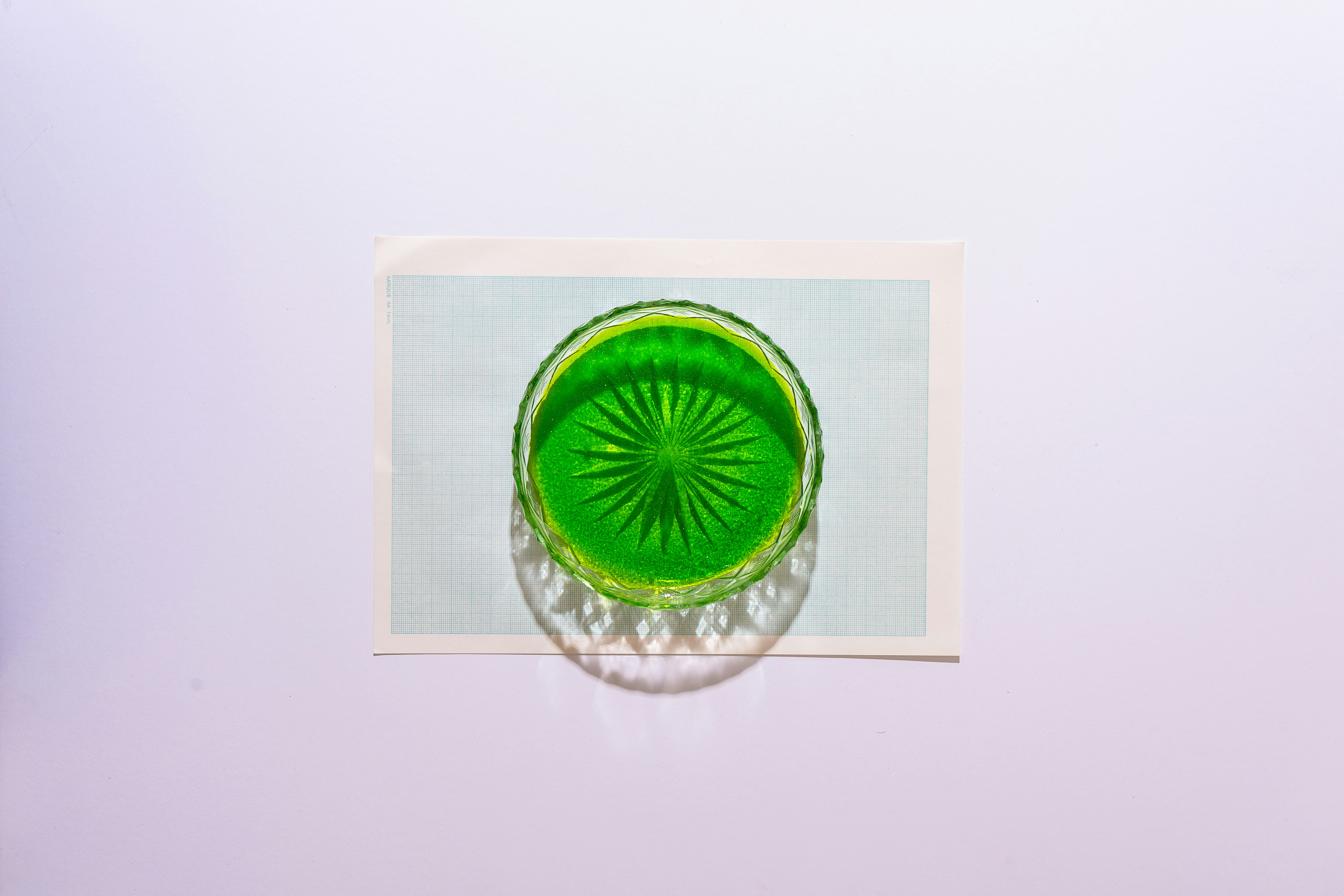 4. Green Ceramic Vase On White Table Turquoise Zoom Background