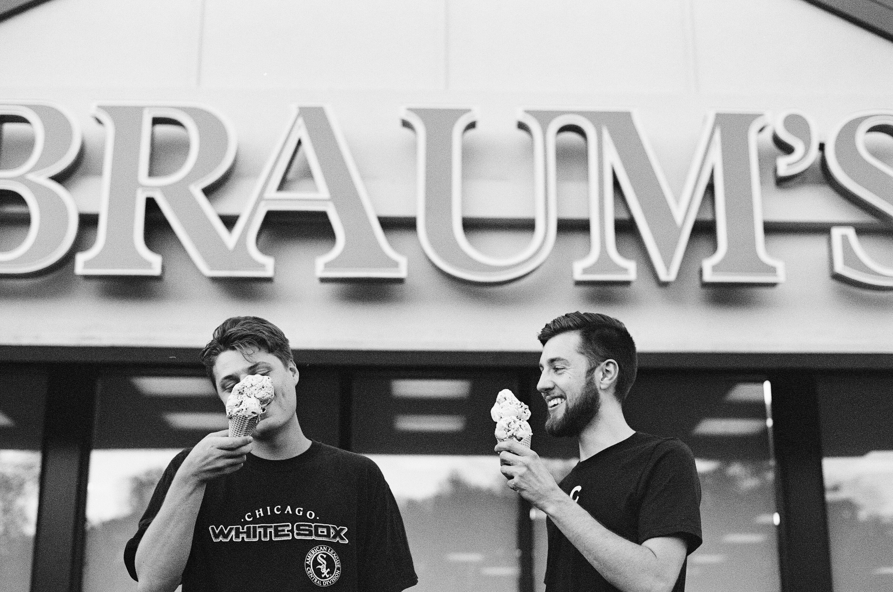 9. Two Men Eating Ice Cream Grascale Photo Two Zoom Background