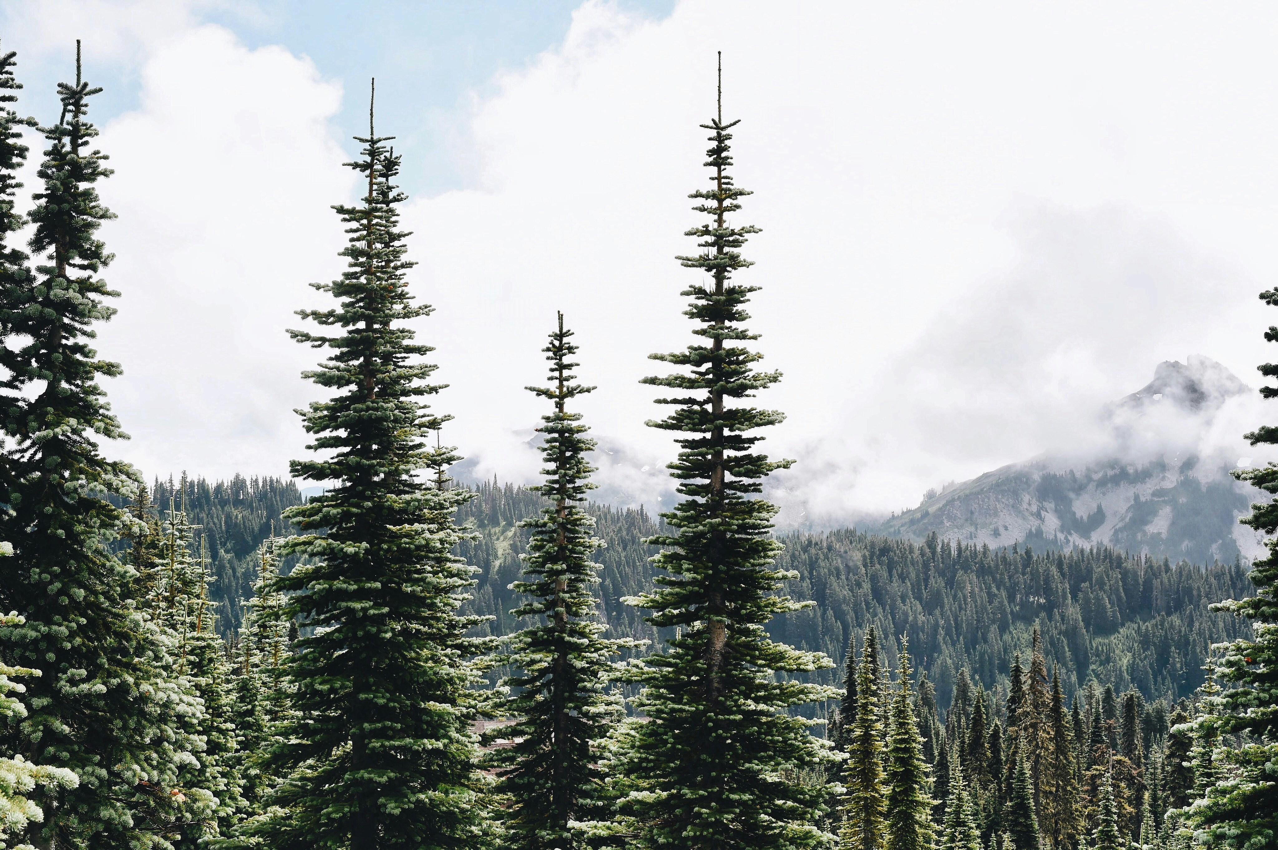 7. Green Pine Trees On Mountain Under White Clouds During Daytime Washington Zoom Background